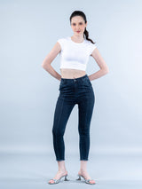 Description: Elevate your denim game with our exquisite Dark Blue Pleated Skinny Fit Jeans for Women, crafted by our renowned design team. These jeans have the essence of modern fashion, seamlessly blending a sleek look with unparalleled comfort.