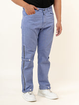 Light Blue Straight Fit Side Zipper Denim Cargo