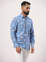 Style Note : Pair This Blue Printed Shirt with Black Cargo Pants and wear brown shoes to complete the look.