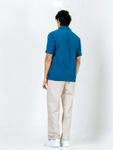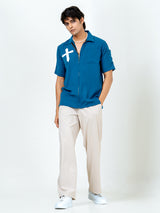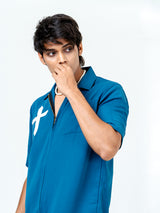 The Teal Blue Poly Crepe Zipper Oversized Shirt combines comfort and style effortlessly. Its oversized fit and functional zipper detail make it a versatile and chic wardrobe staple.