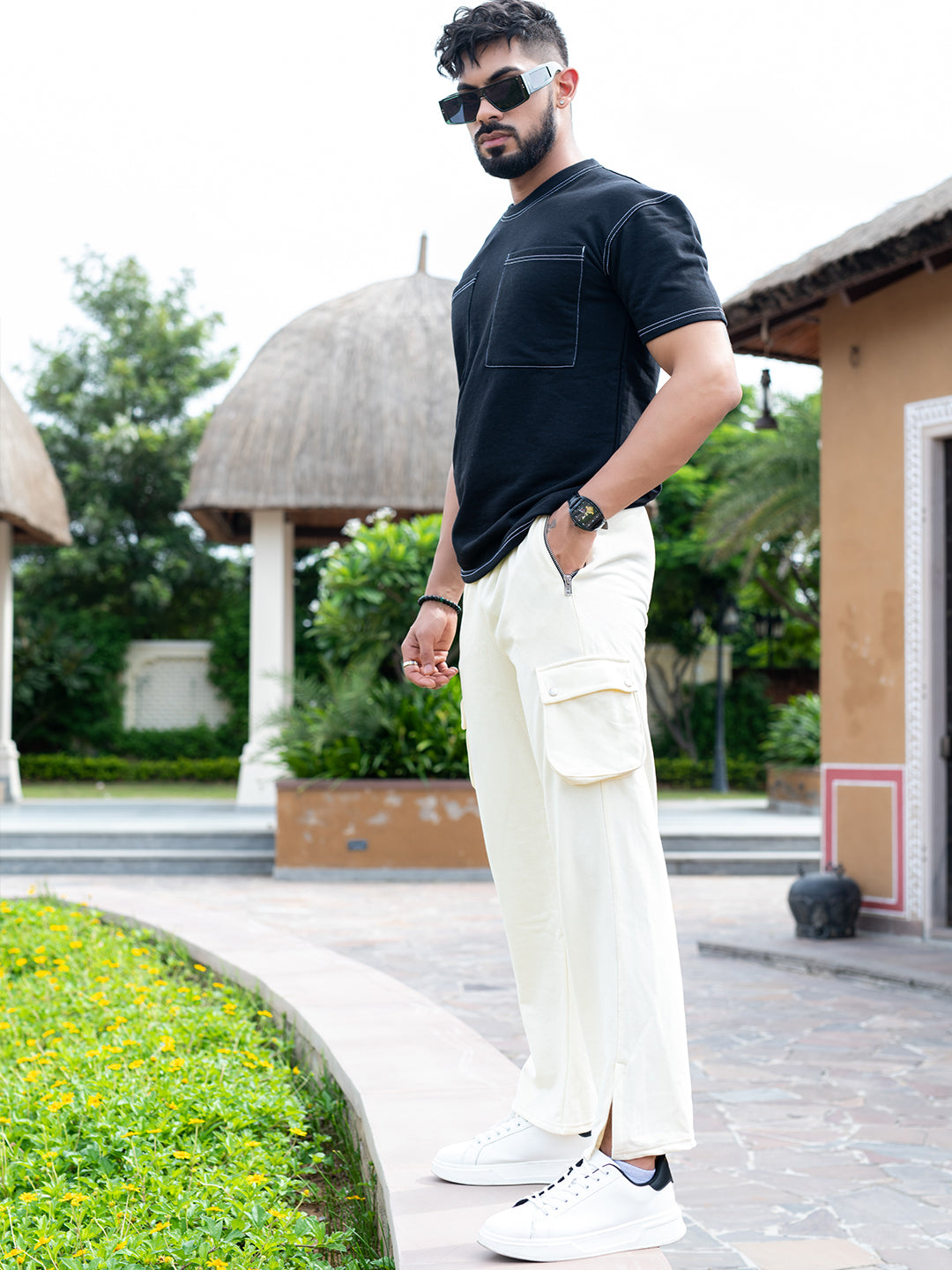 About the product- These Cream Boot Cut Cargo Track Pants are crafted to make you appear casual yet stylish. These stylish joggers are a must-have for your wardrobe as they will make your look stylish.