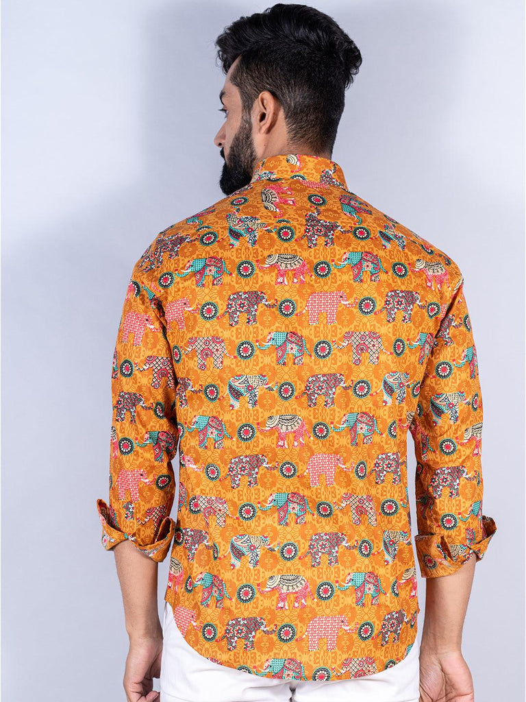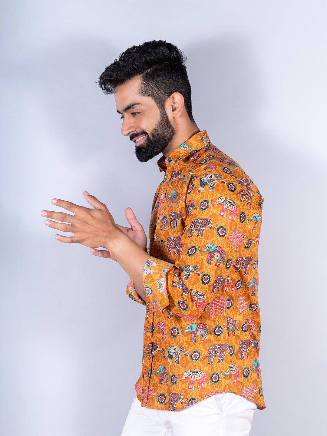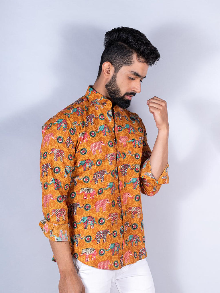 About the product: This mustard elephant paisley printed full sleeves cotton shirt is made to make you look smart. This comfortable shirt is a must inside your wardrobe.
