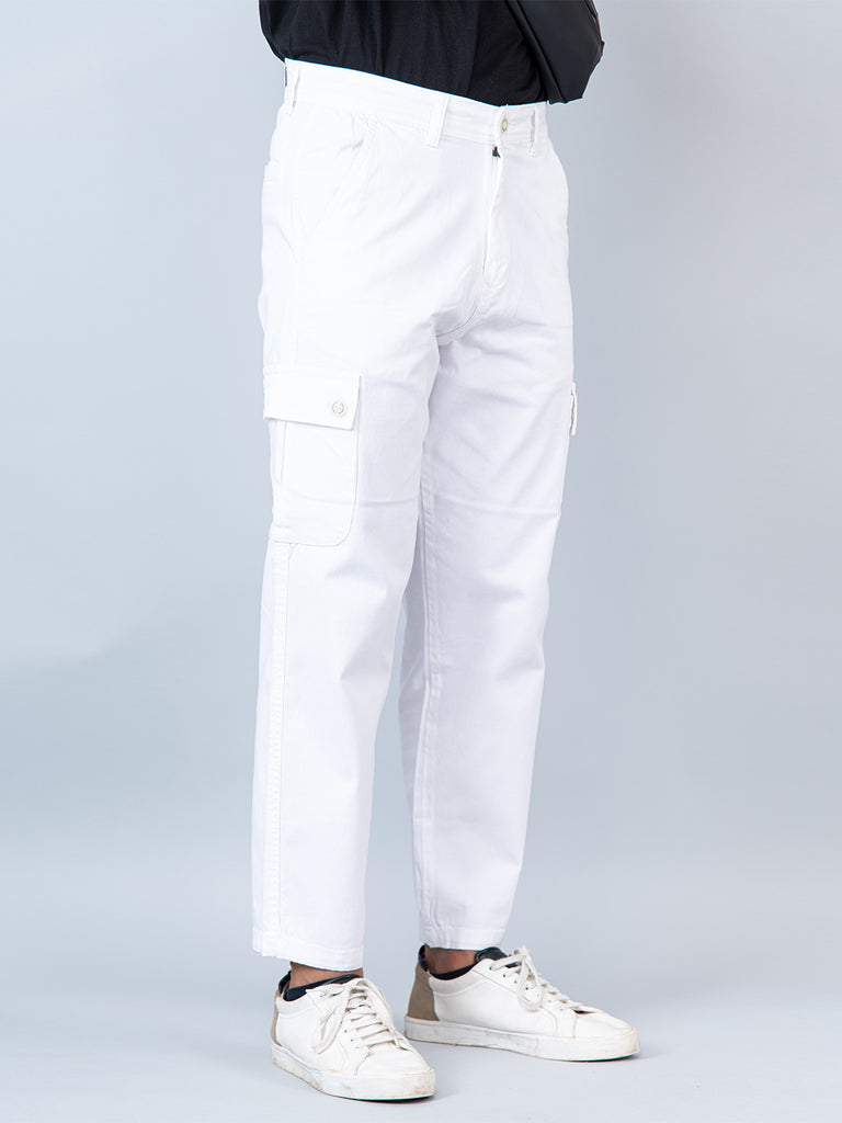 About The Product- These White Baggy Fit Chinos Cotton Cargo Pants Are Constructed From cotton; These Pants Are Built To Last While Maintaining Breath-Ability And Comfort.
