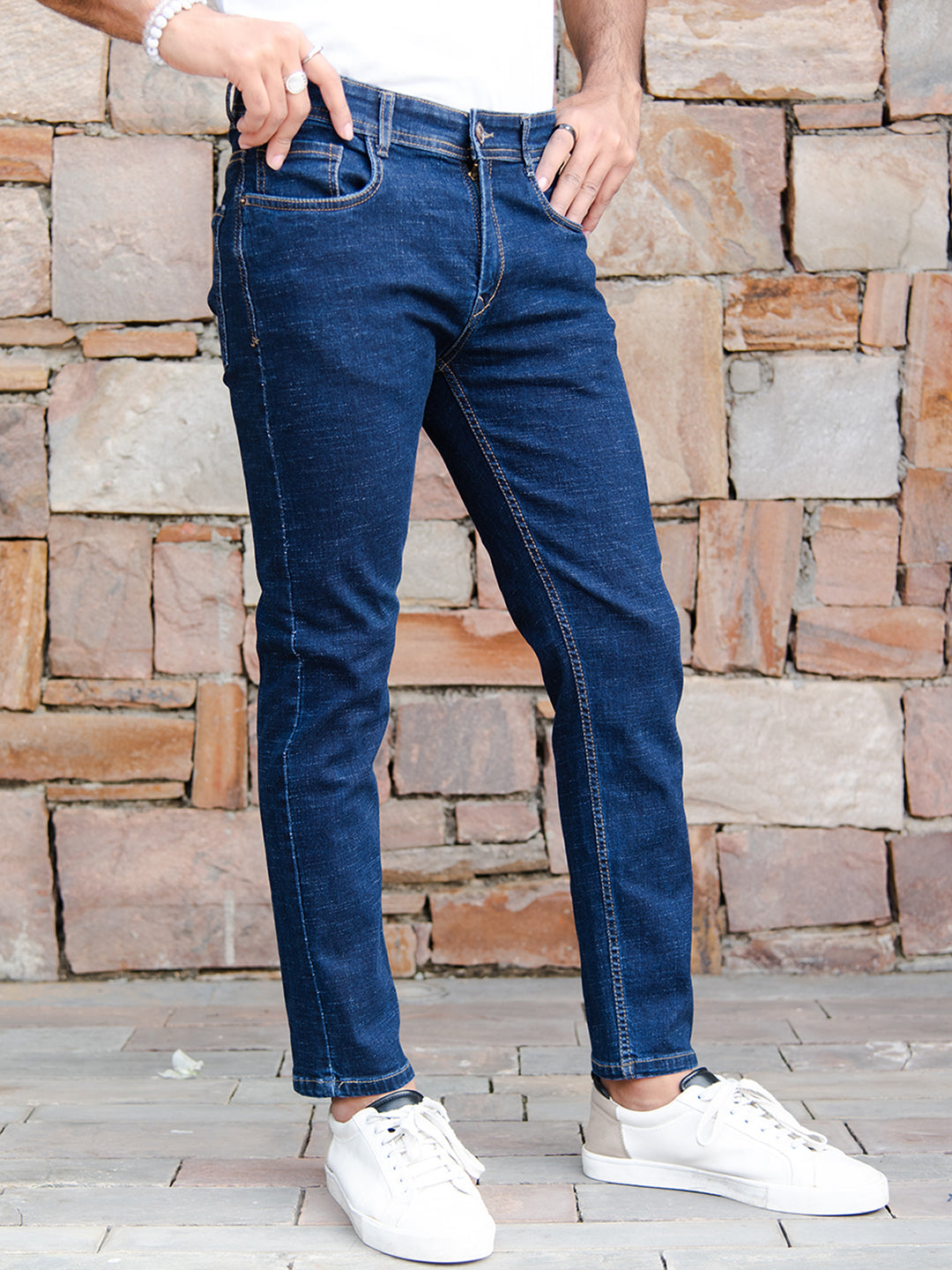 These Denim Jeans offer a trendy and contemporary look. Made from high-quality denim, they provide a comfortable and flattering fit for everyday wear. The denim jeans for men provide a contemporary silhouette, perfect for showcasing your favorite footwear.