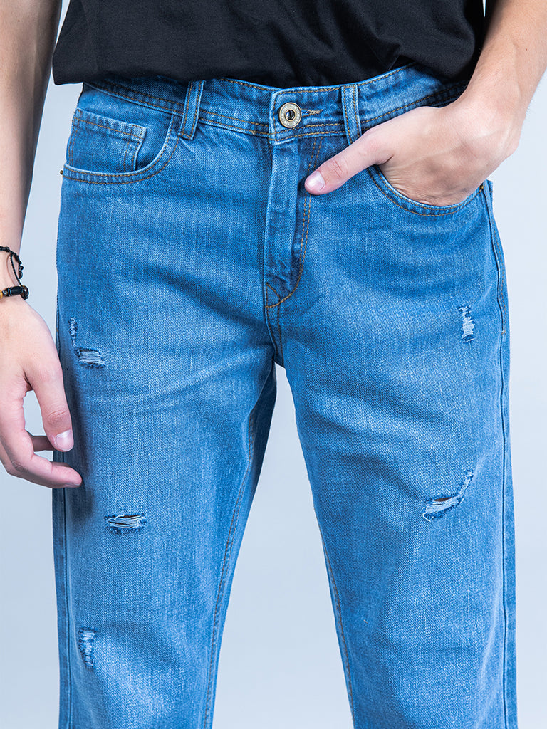 Blue Ripped Cropped Slim Fit Mens JeansTistabene