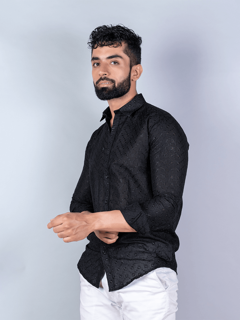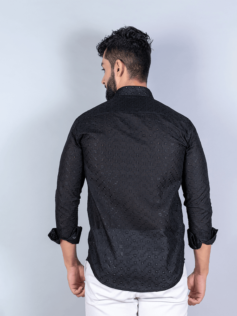 About the product: This black embroidered full sleeves cotton shirt is made to make you look smart. This comfortable shirt is a must inside your wardrobe.