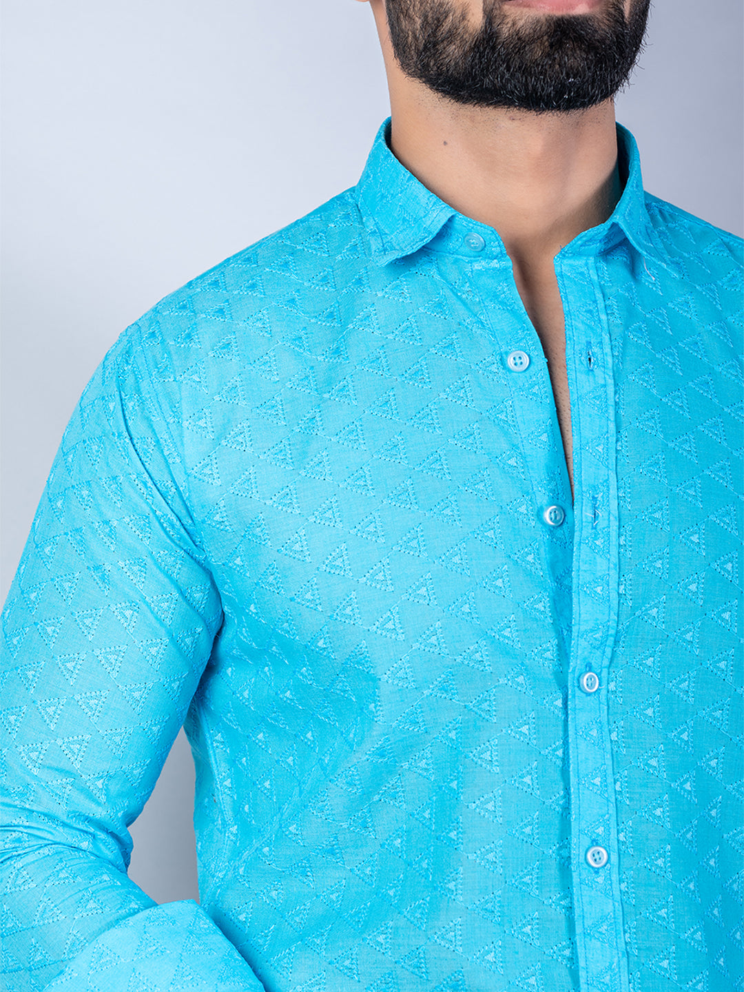 About the product: This sky blue embroidered full sleeves cotton shirt is made to make you look smart. This comfortable shirt is a must inside your wardrobe.
