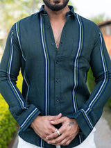 About the product: This blue striped full sleeves giza cotton shirt is made to make you look smart. This comfortable shirt is a must inside your wardrobe.