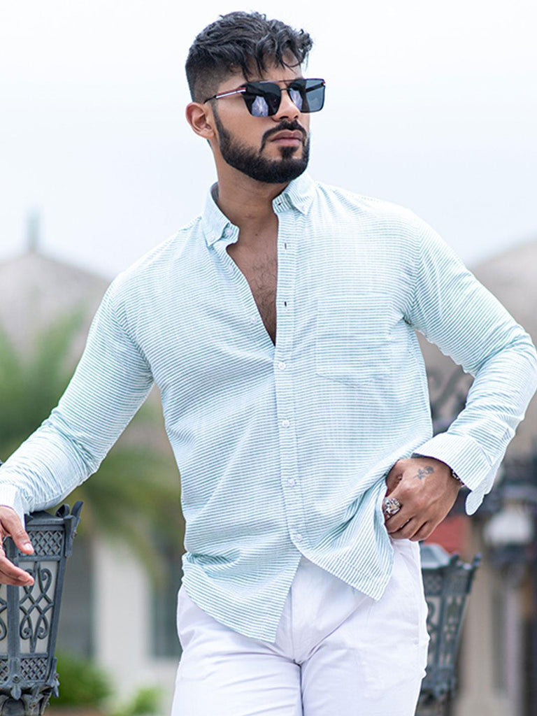 About the product- Explore the collection of beautifully designed shirts from Tistabene. This Green Striped Full Sleeves Giza Cotton Shirt is your wardrobe essential and makes you look trendy!