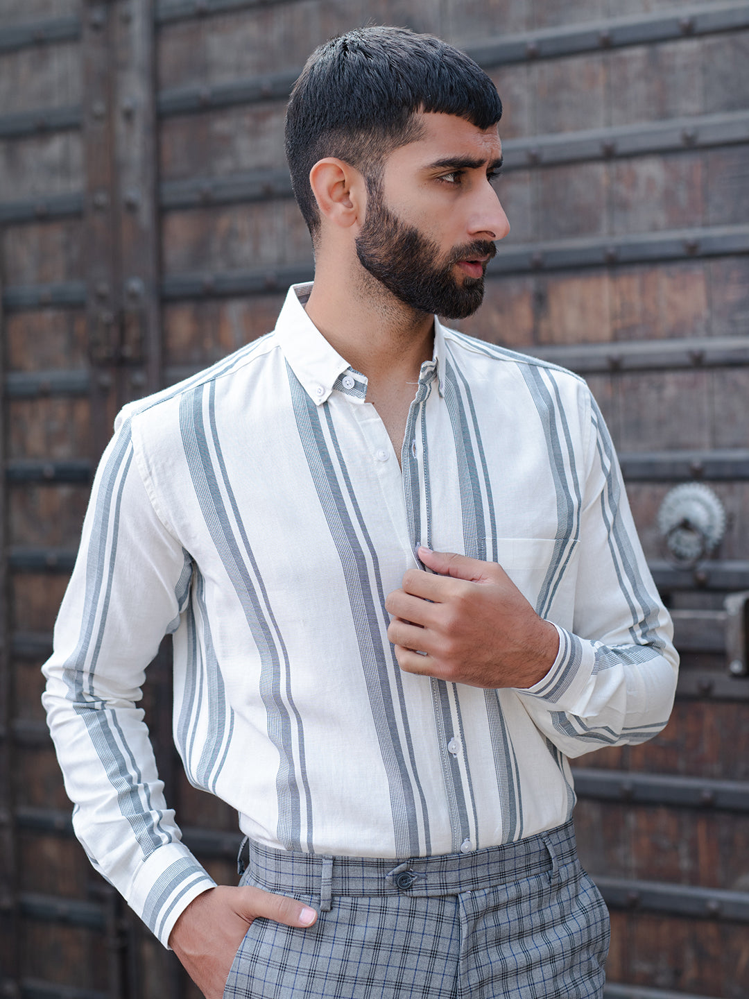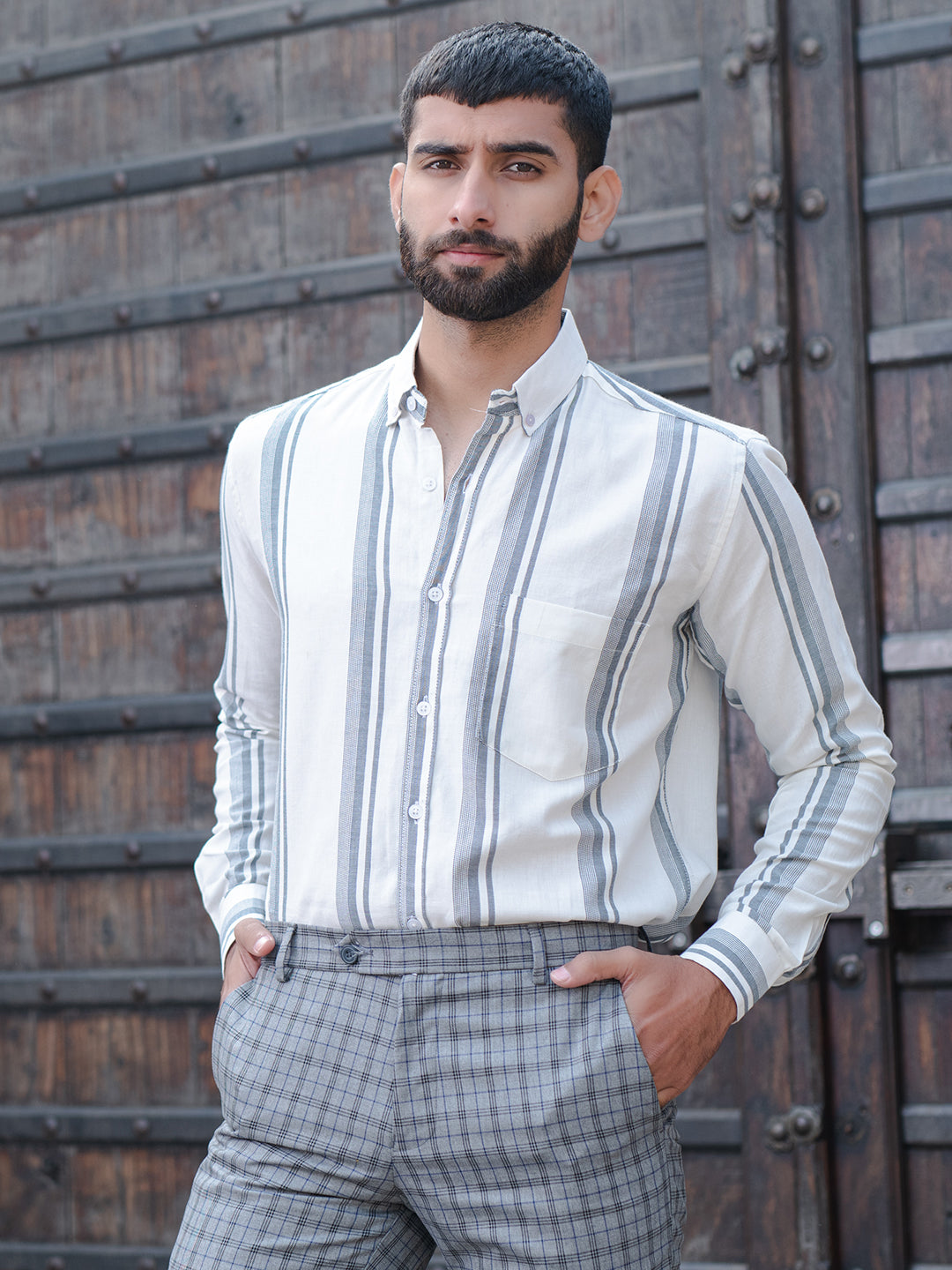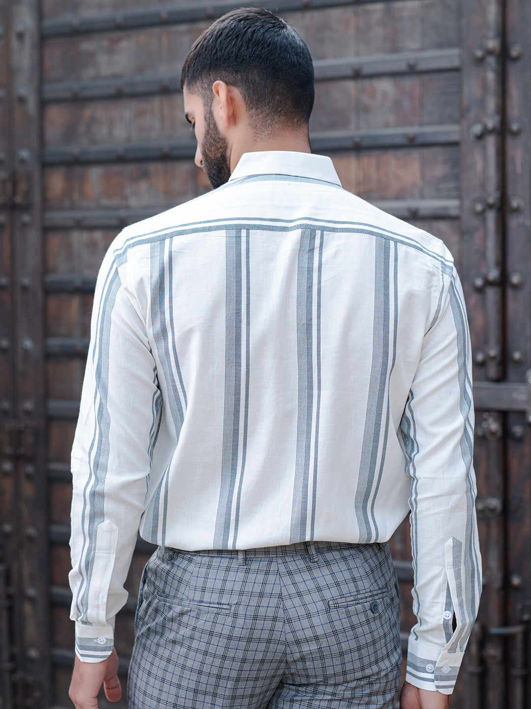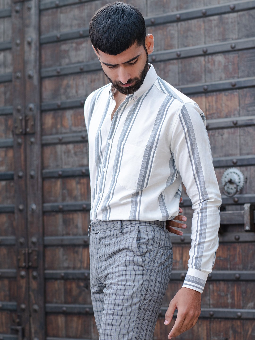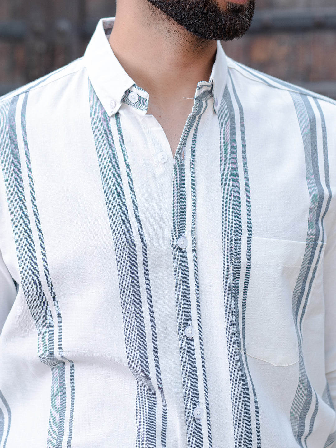 The White Striped Full Sleeves Giza Cotton Shirt is an ideal formal shirt that is versatile as well as comfortable.