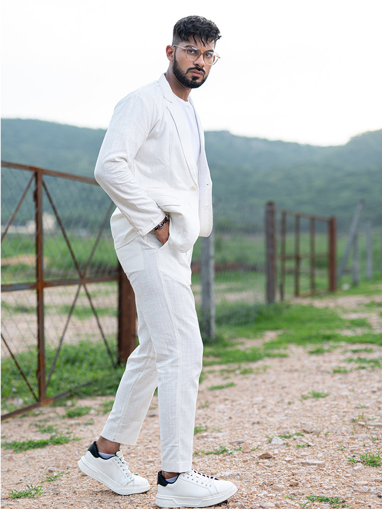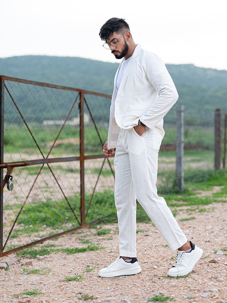 About the product: This White Linen Suit is made to make you look dapper. This suit is a mixture of classy and stylish piece and must for your wardrobe.