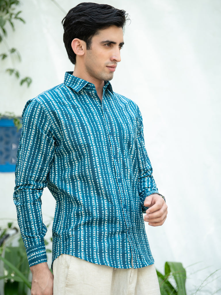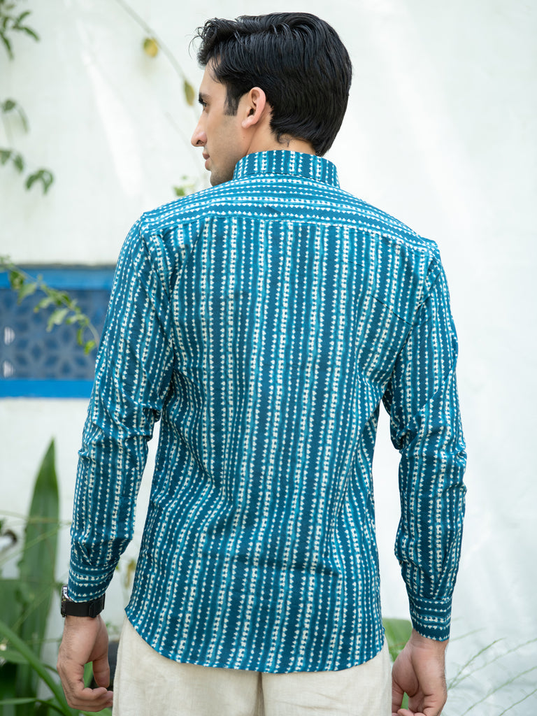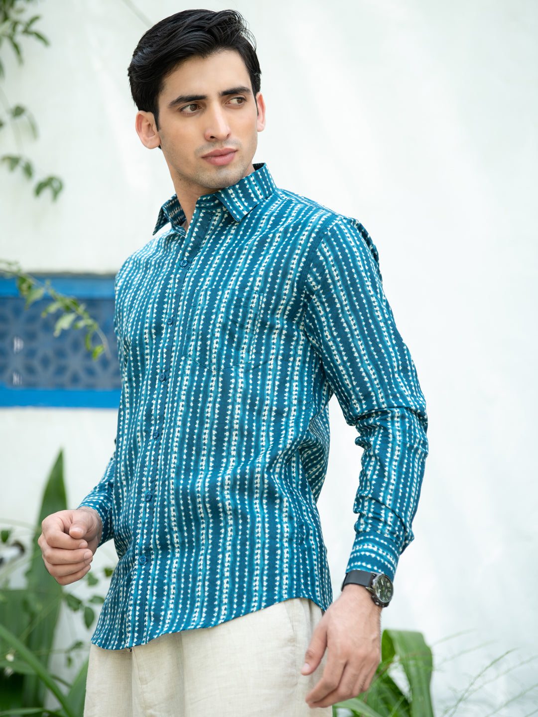 About The Product- Aqua Blue Jaipuri Printed Cotton Shirt For Men. A Shirt That Is Stitched With Detailed Precision And Printed With An Authentic Design.
