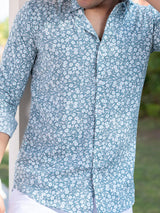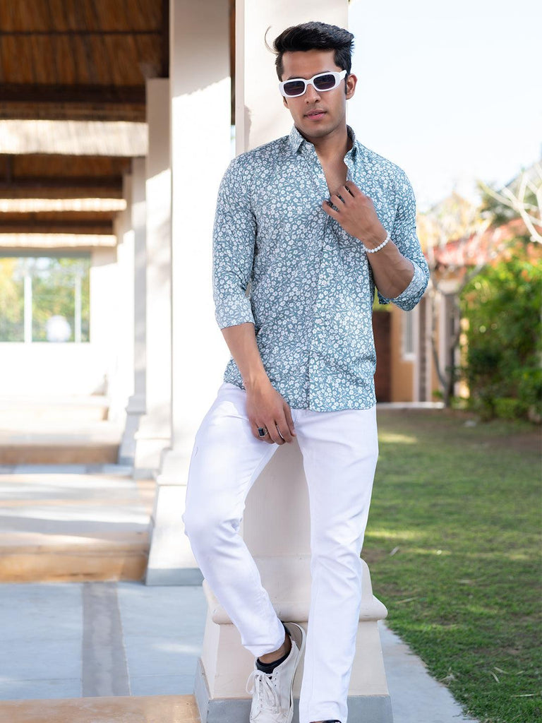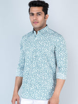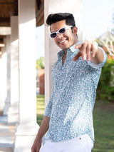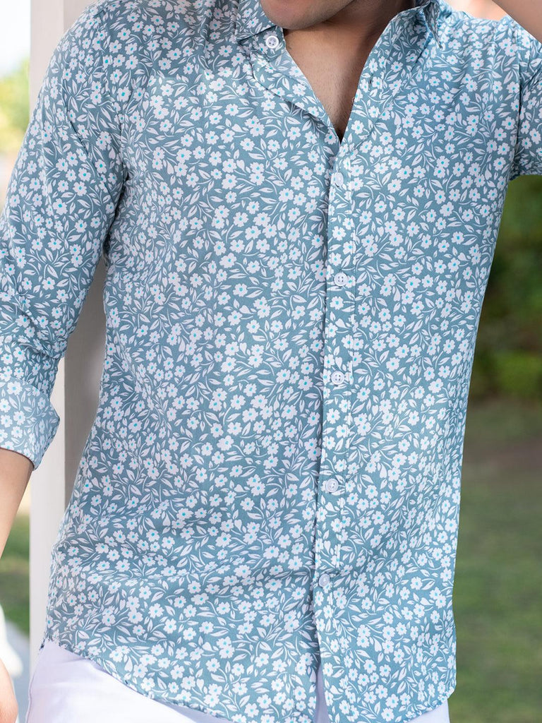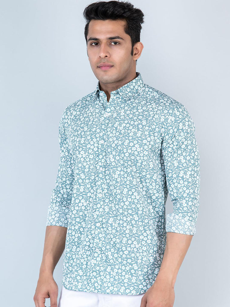 About the product- This Aqua Marine Floral Printed Full Sleeves Crepe Shirt is made to make you look smart, this comfortable shirt is your wardrobe essential which gives a stunning look while wearing.