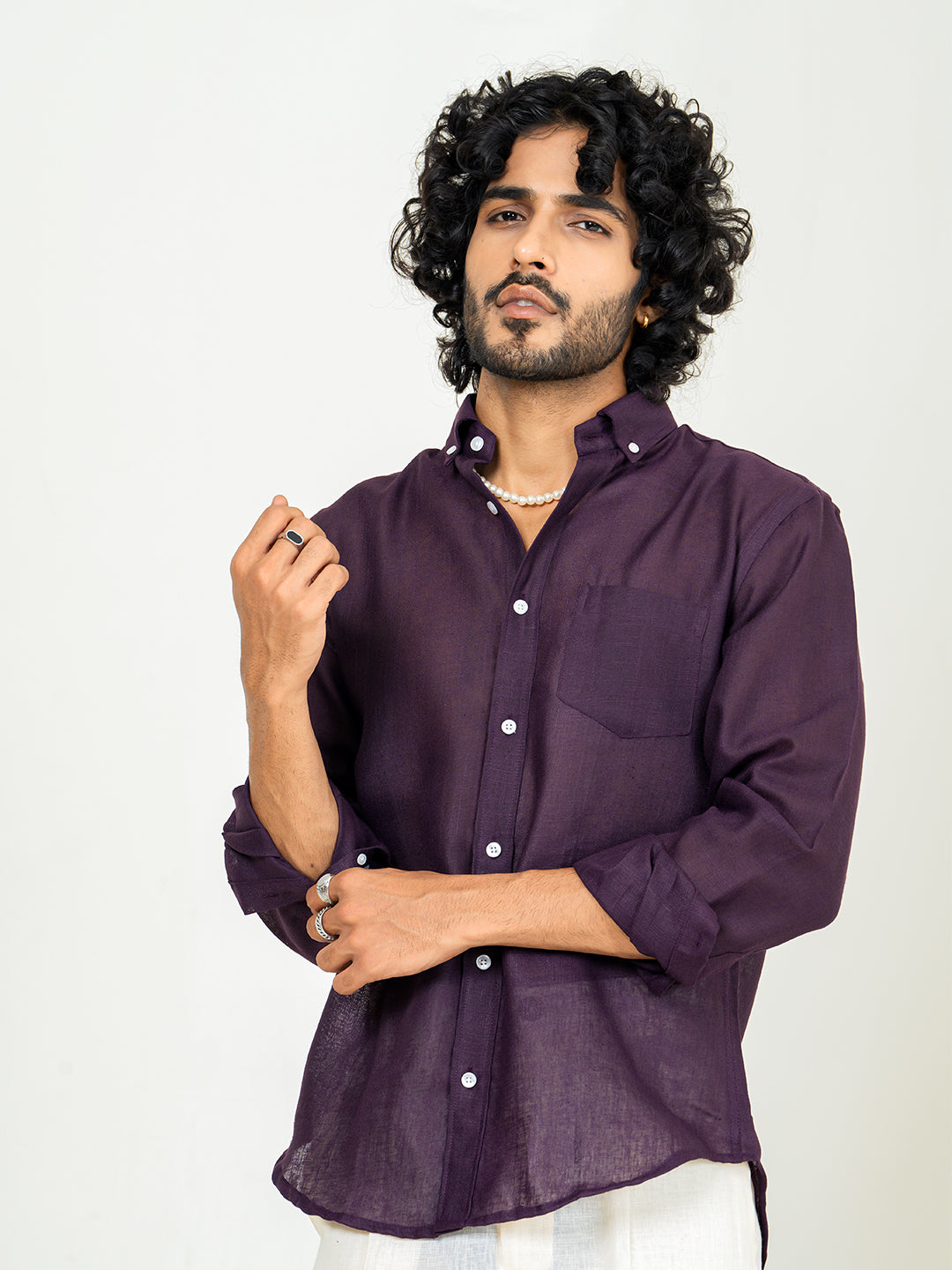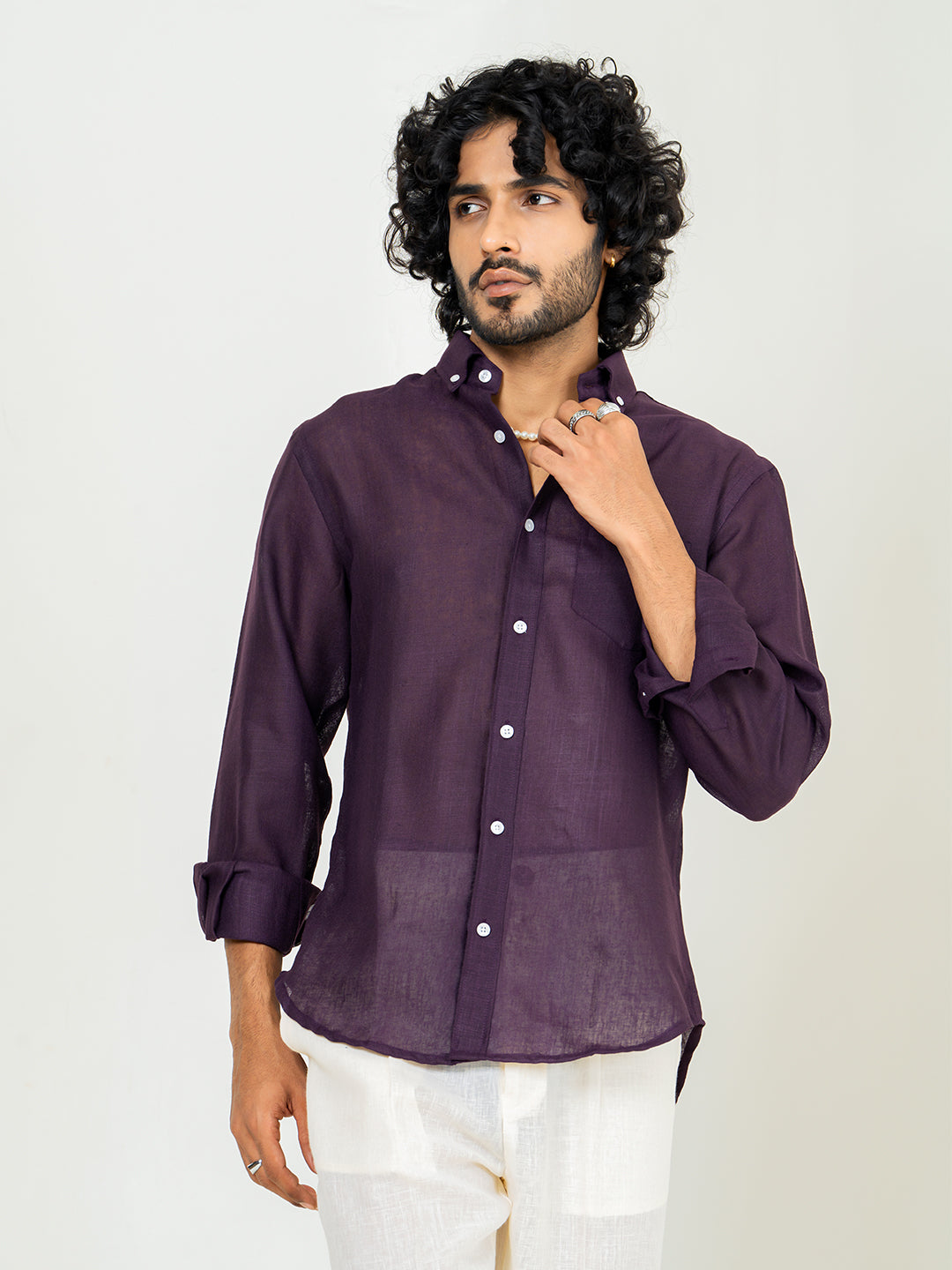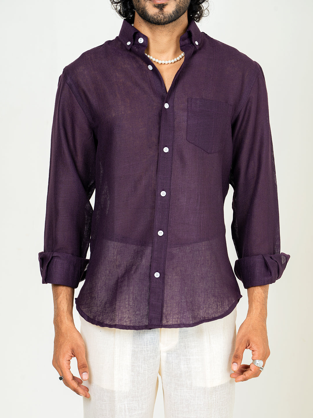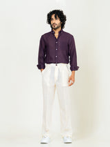 This aubergine shirt combines the rich, bold hue with a lightweight linen blend. It’s perfect for those looking to add a touch of unique color to their wardrobe without sacrificing comfort.