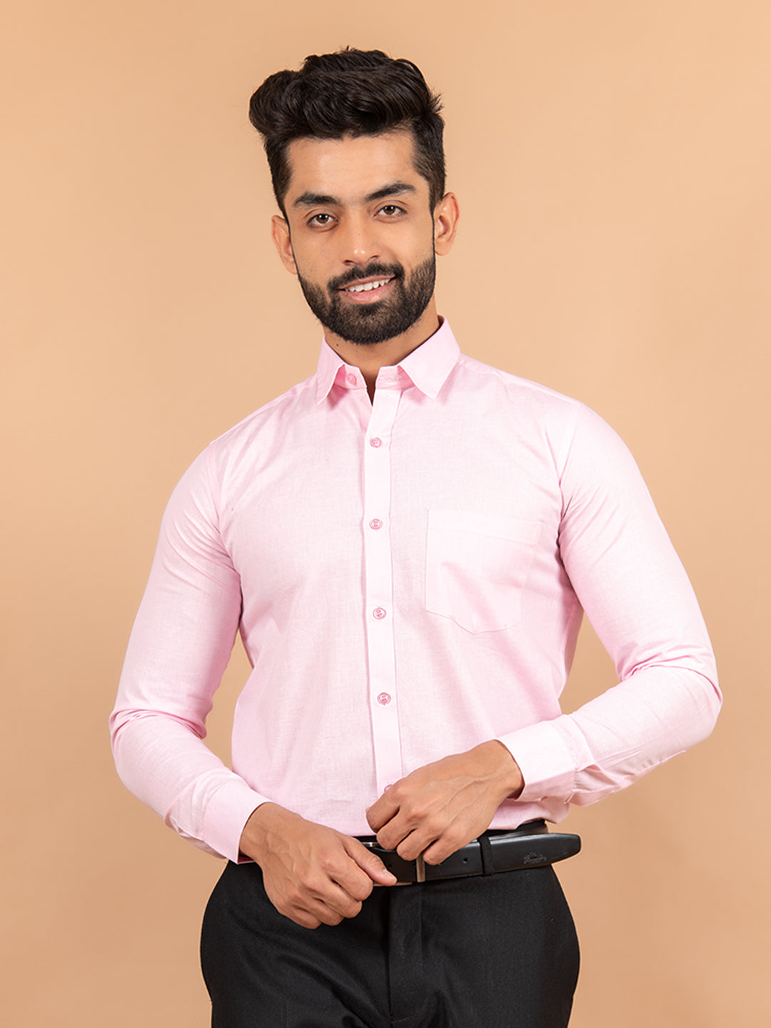 About The Product- The Baby Pink Linen Shirt Is Made For Formal Looks, 100% Comfortable And Feels Soft And Smooth On The Skin.