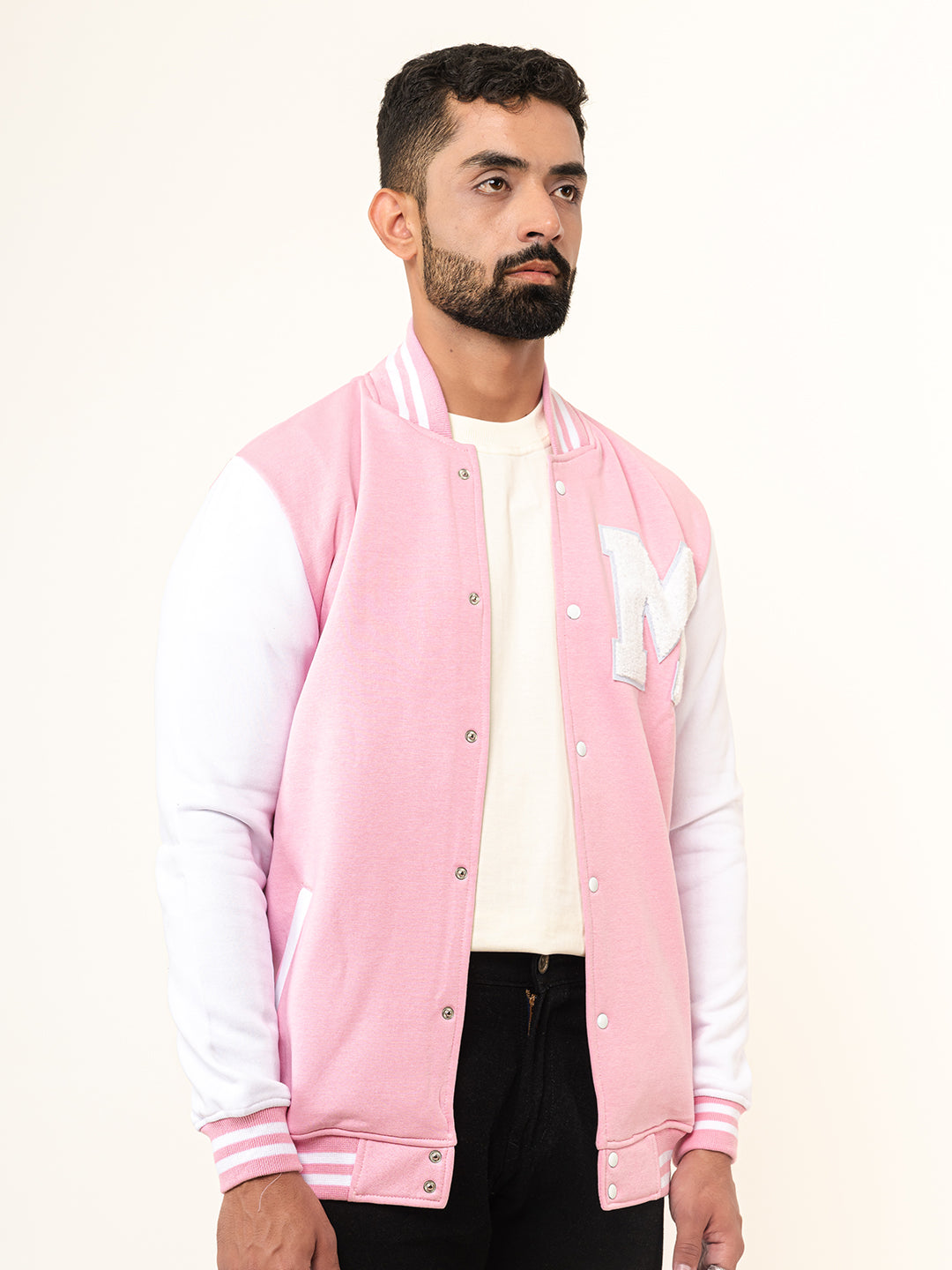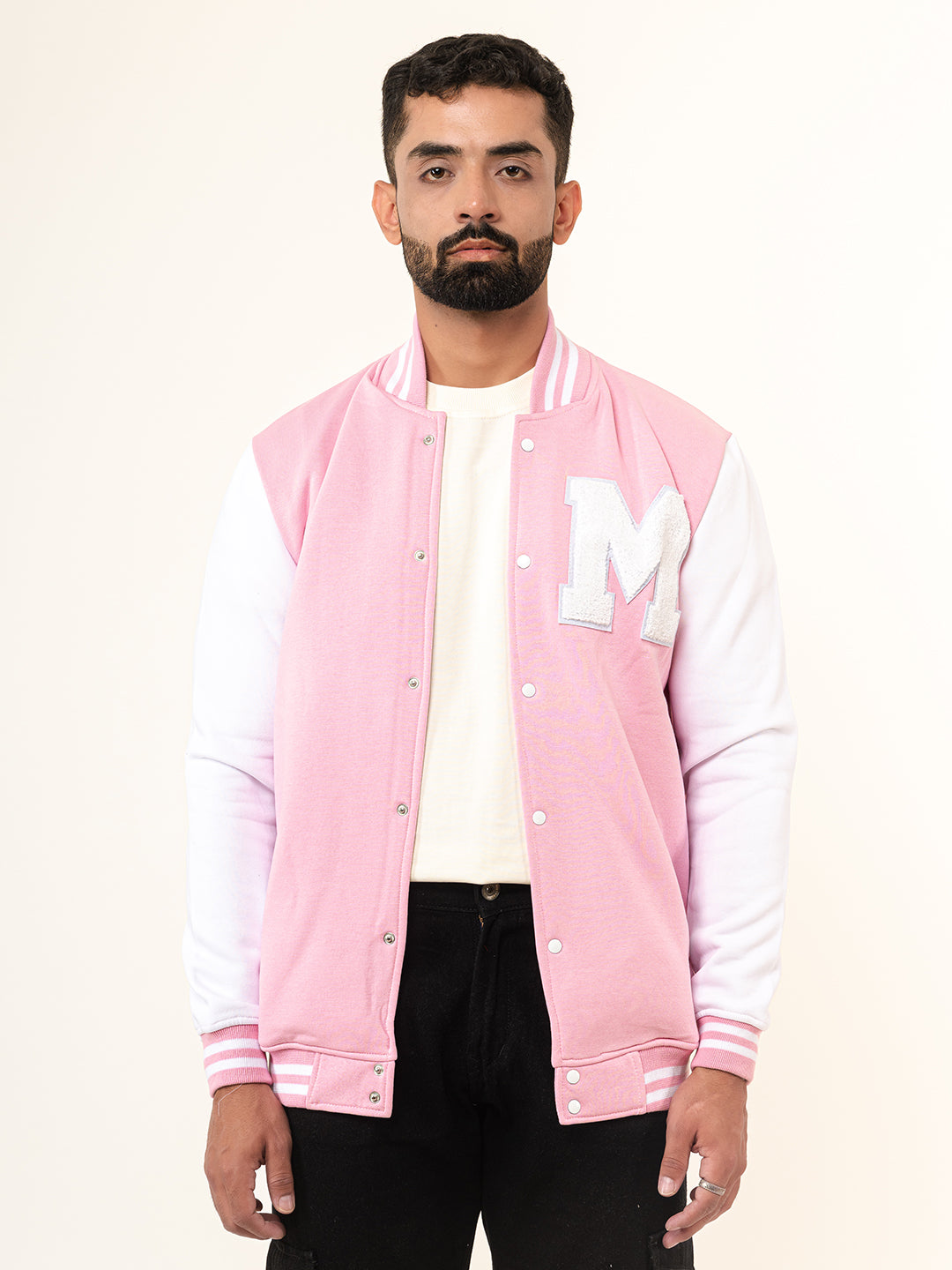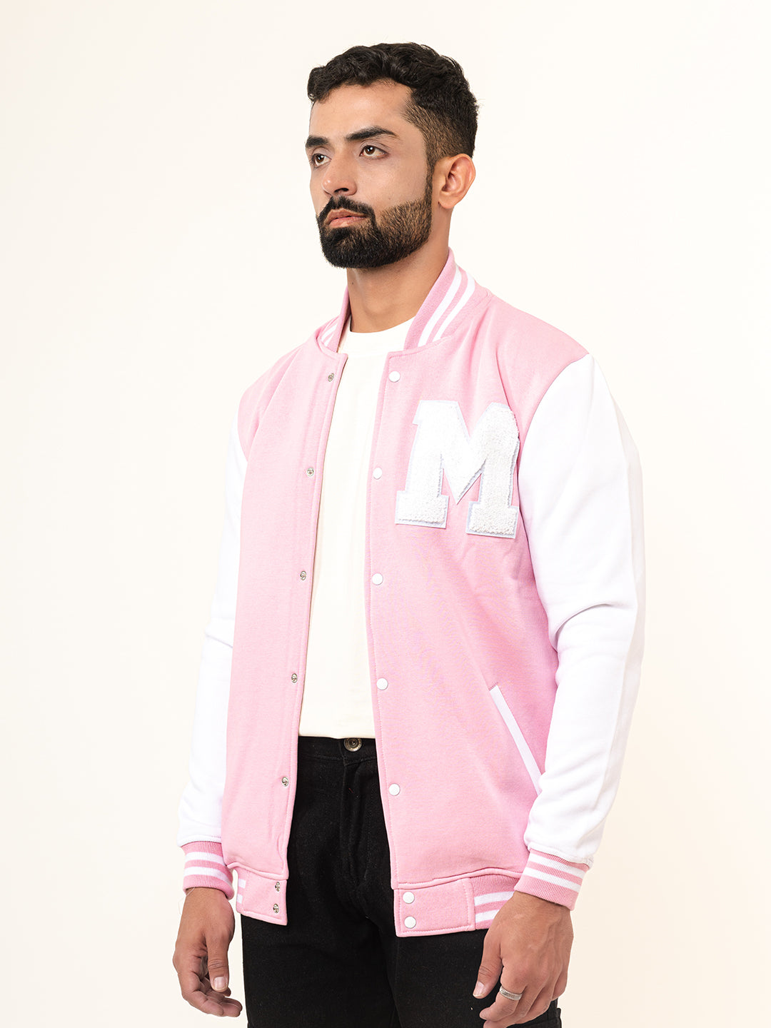 The Baby Pink M Varsity Jacket is a very cool jacket with pretty colours and comfortable fabric to keep you stylish as well as cozy!Sleeve Type: Full Sleeves