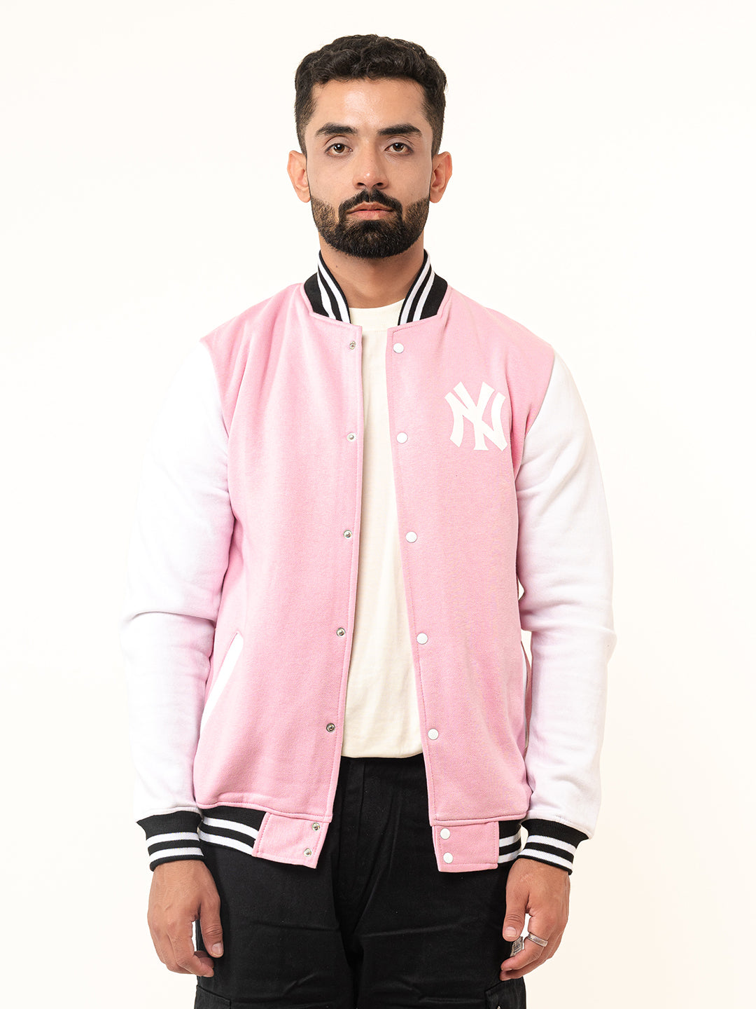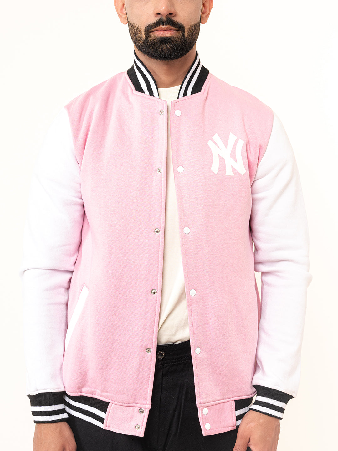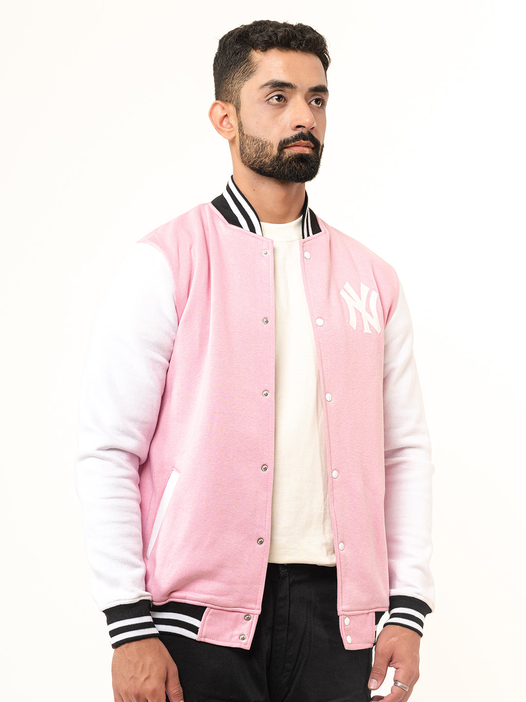 This Baby Pink NY Varsity Jacket is made of very comfortable cotton fabric to keep you warm and cozy throughout the day.