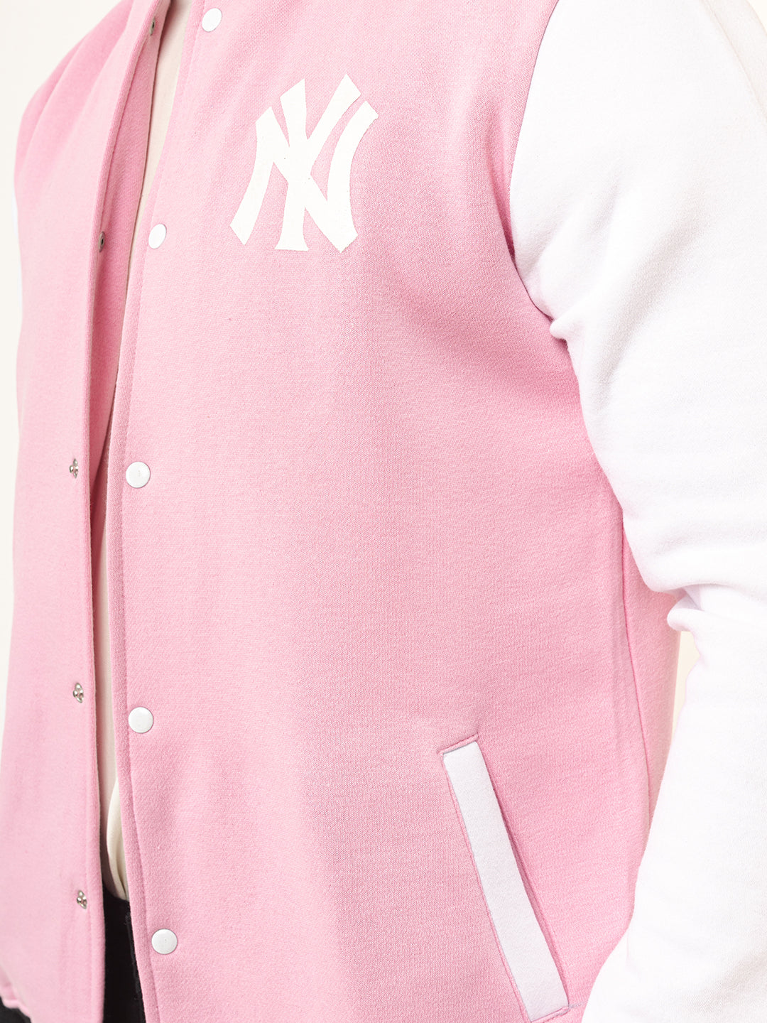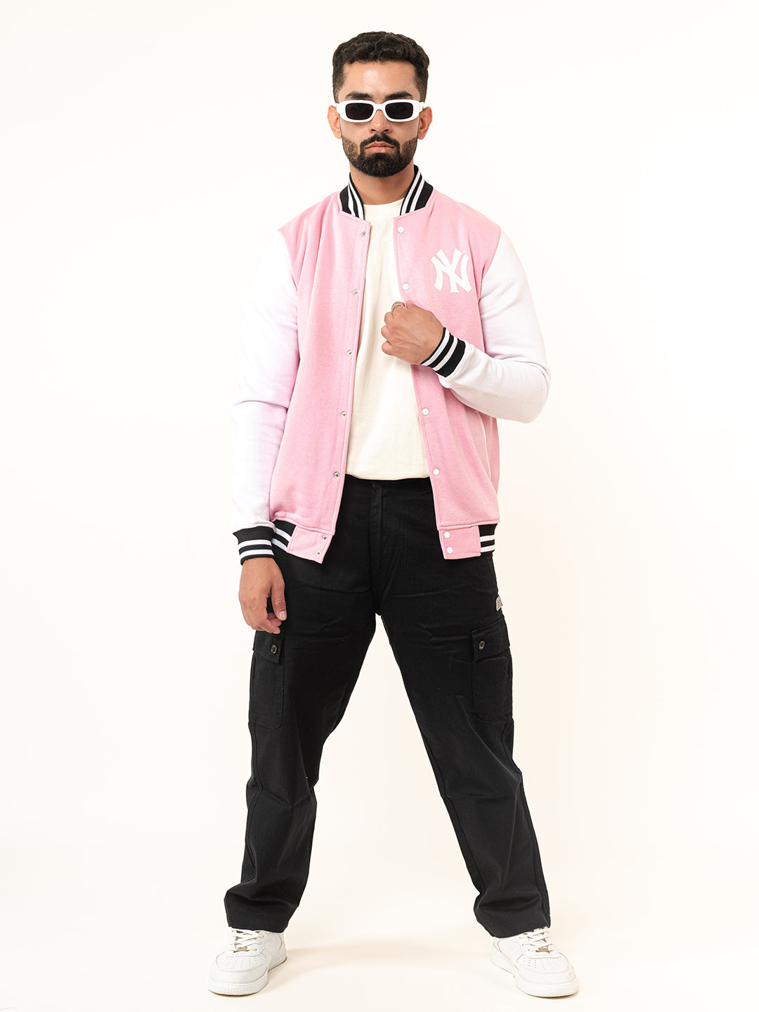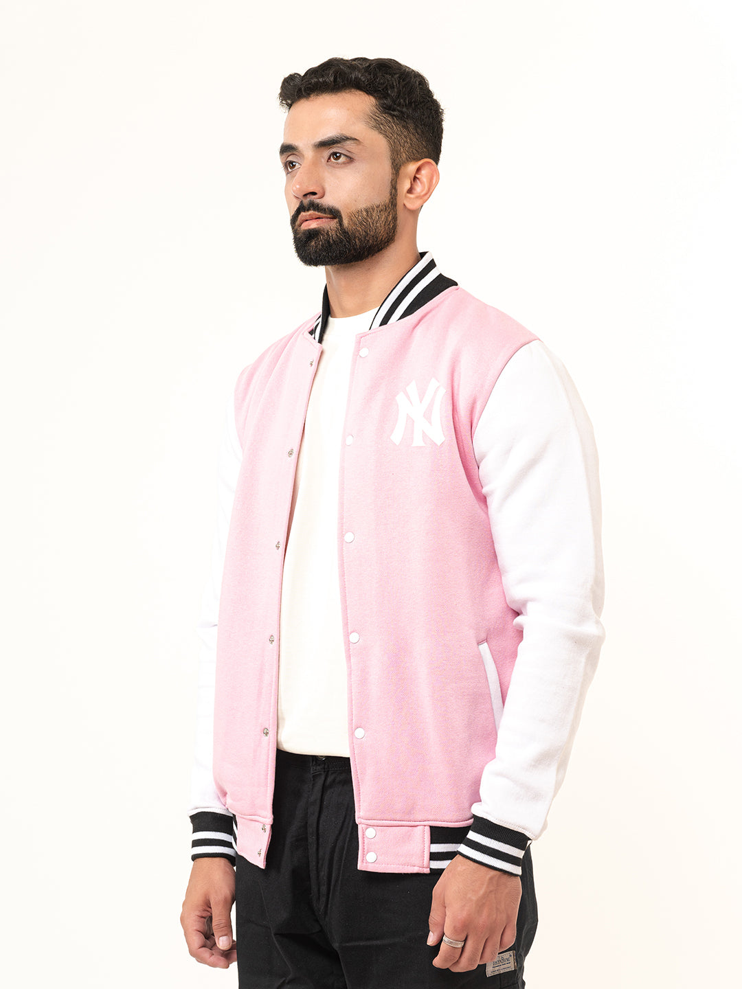 This Baby Pink NY Varsity Jacket is made of very comfortable cotton fabric to keep you warm and cozy throughout the day.