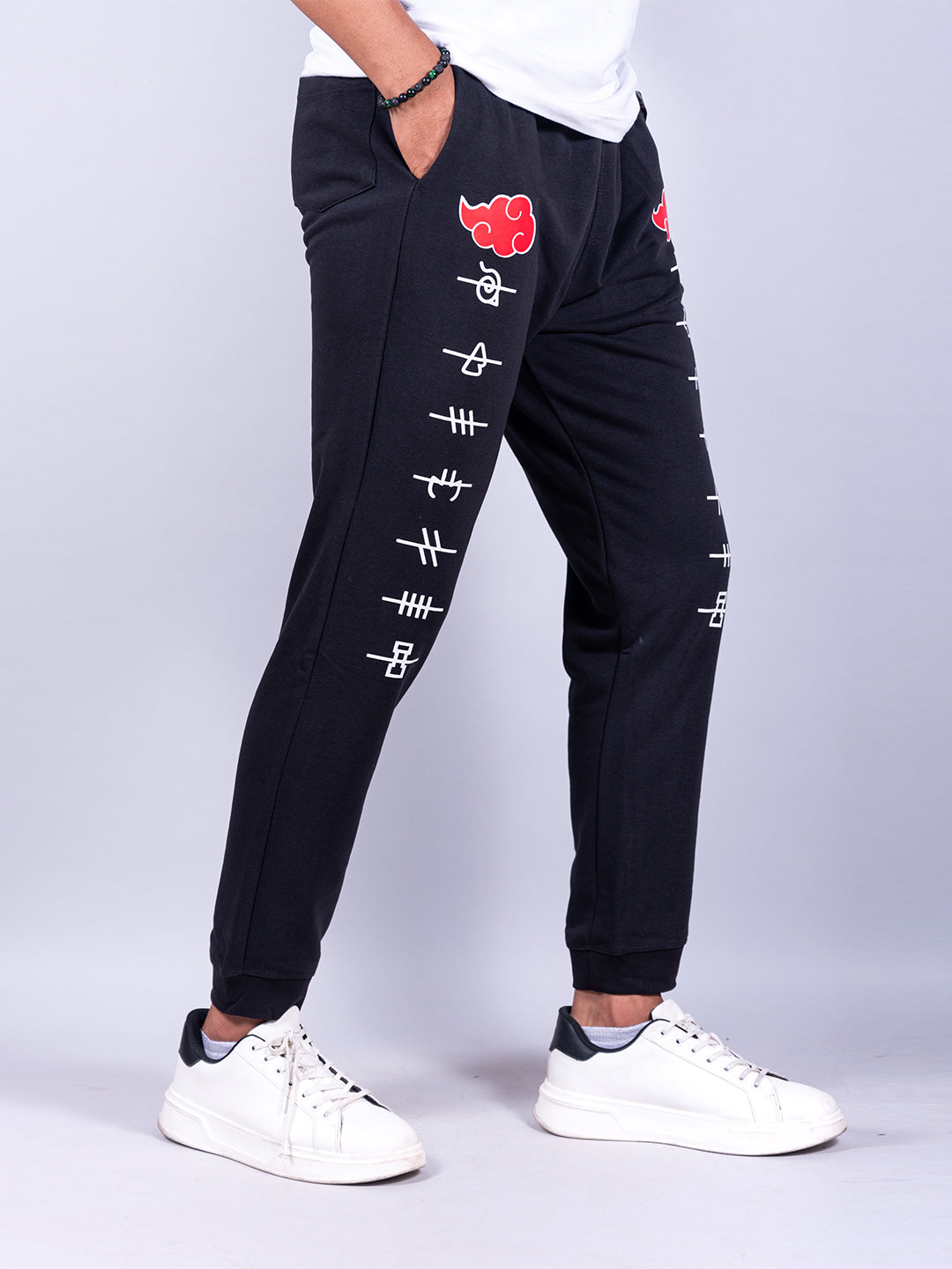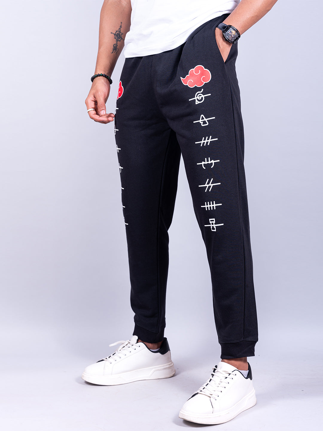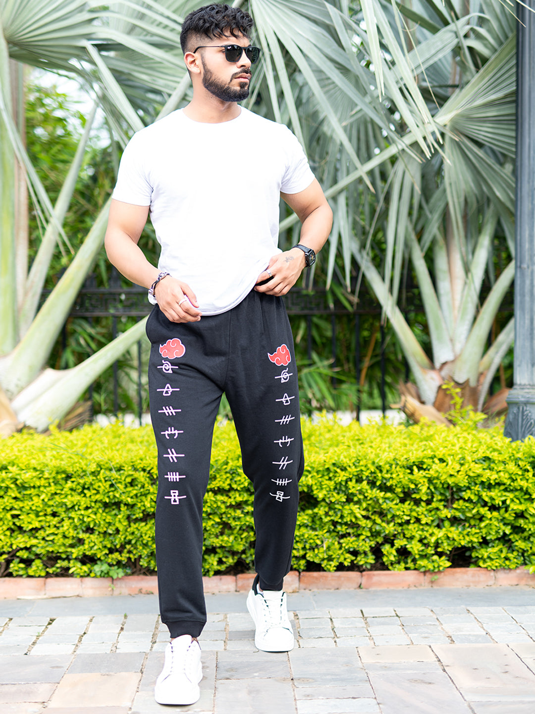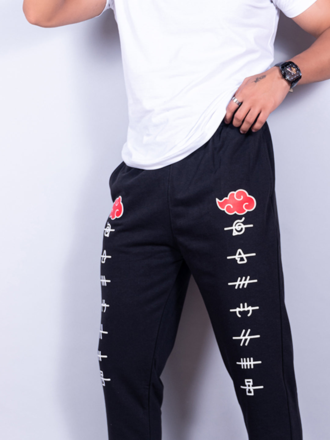About the product- The black anime Akatsuki cloud printed cotton joggers for men feature a striking and recognizable design inspired by the Akatsuki from popular anime.The joggers are constructed with durability in mind, ensuring they withstand regular wear and maintain the print's vibrancy over time.