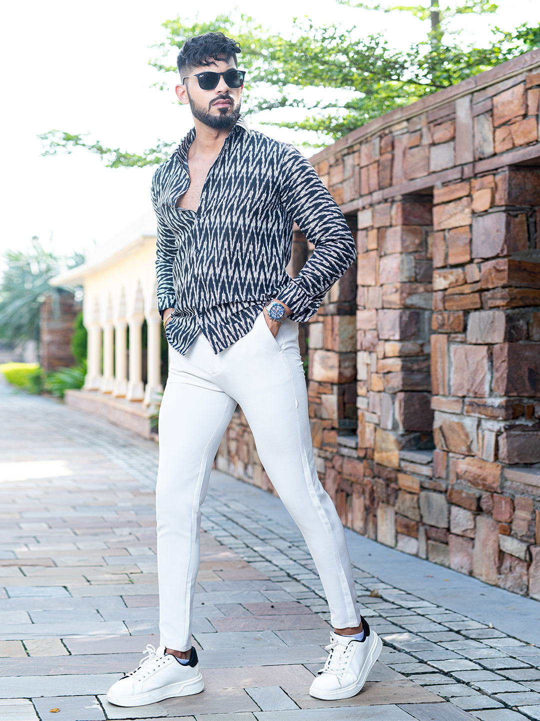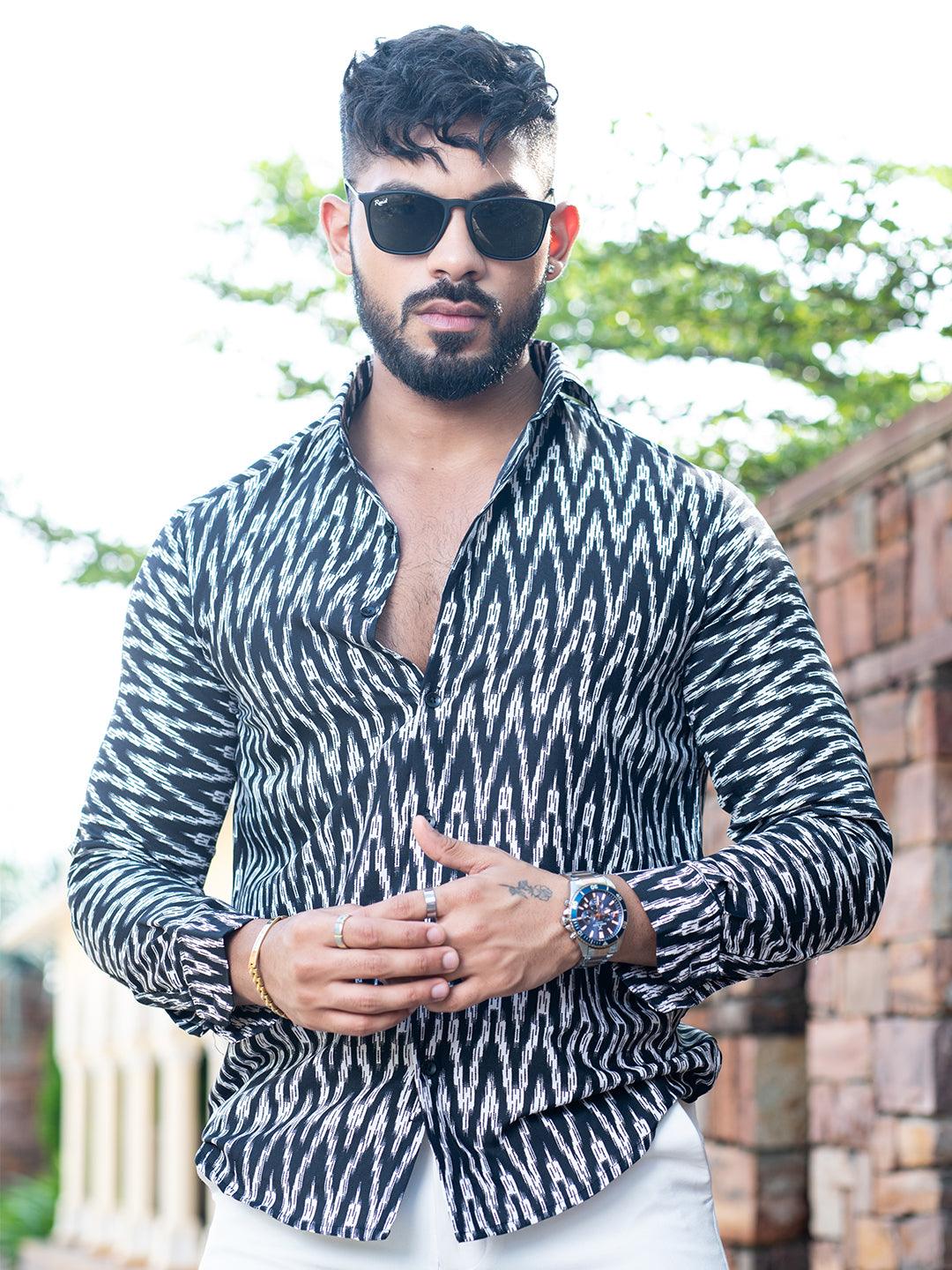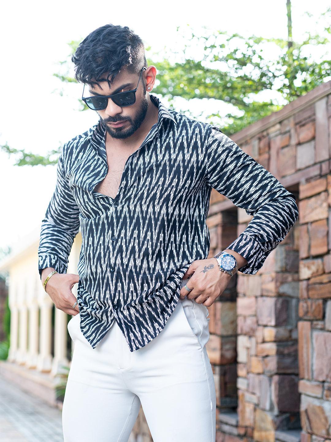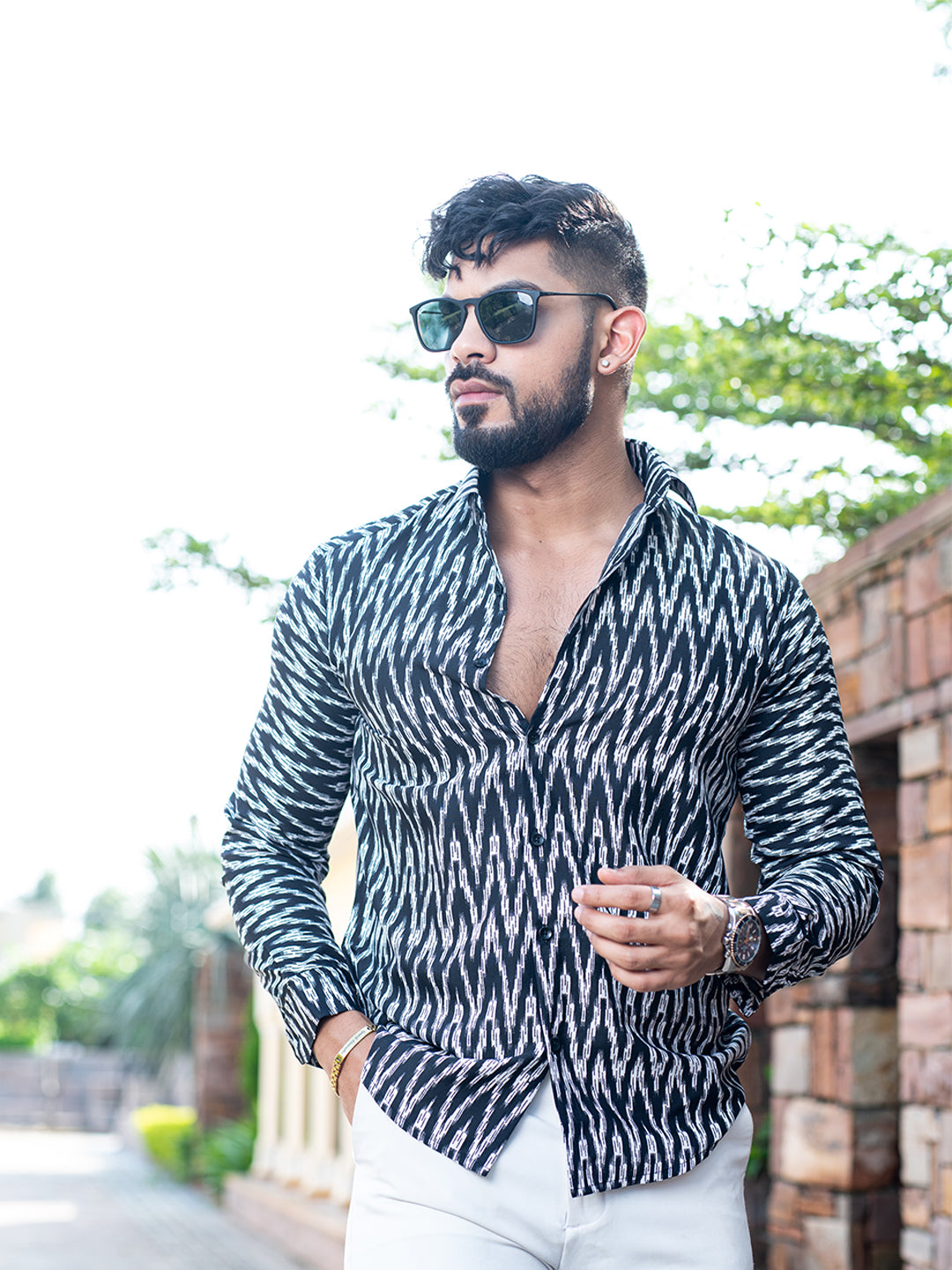 About the product: This Black Chevron Printed Full Sleeves Crepe Shirt is made to make you look dapper. This shirt is a must in your wardrobe.