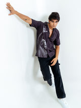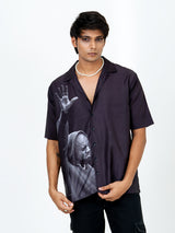 The Black Crepe Kanye West Printed Oversized Shirt offers a bold and trendy statement for your wardrobe. Its oversized fit and striking print make it a standout piece.
