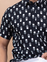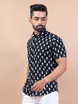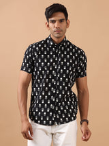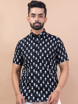 About the product: This black distance printed half sleeve shirt is made to make you look smart. This comfortable shirt is a must inside your wardrobe.