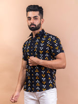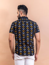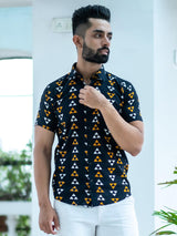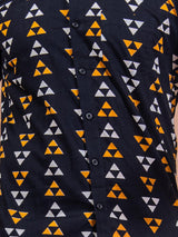 About the product: This black geometric motif printed cotton shirt is just so elegant and comforting at the same time. These shirts should be a mandatory part of your wardrobe.