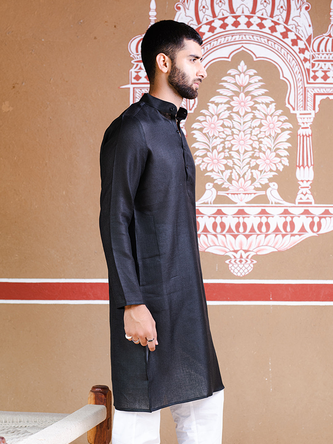 About the product- Black is everyone's favourite! This black linen kurta is very comfortable and gives a very stylish look!