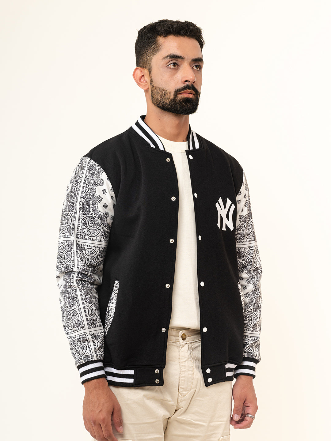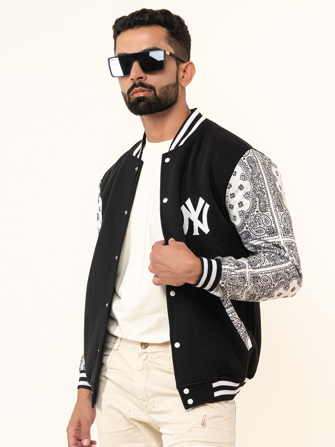 This Black Paisley Bandana NY Printed Varsity Jacket is the classic black jacket that you need every winter. It is comfortable as well as fashionable.
