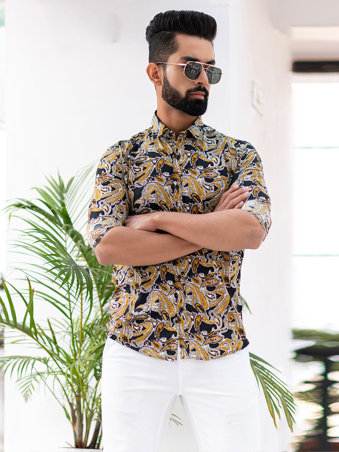 About The Product- This Black Paisley Printed Full Sleeves Crepe Shirt Is Truly Comfortable And Easy To Wear In Every Season, Refresh Your Wardrobe With This Stylish Shirt.