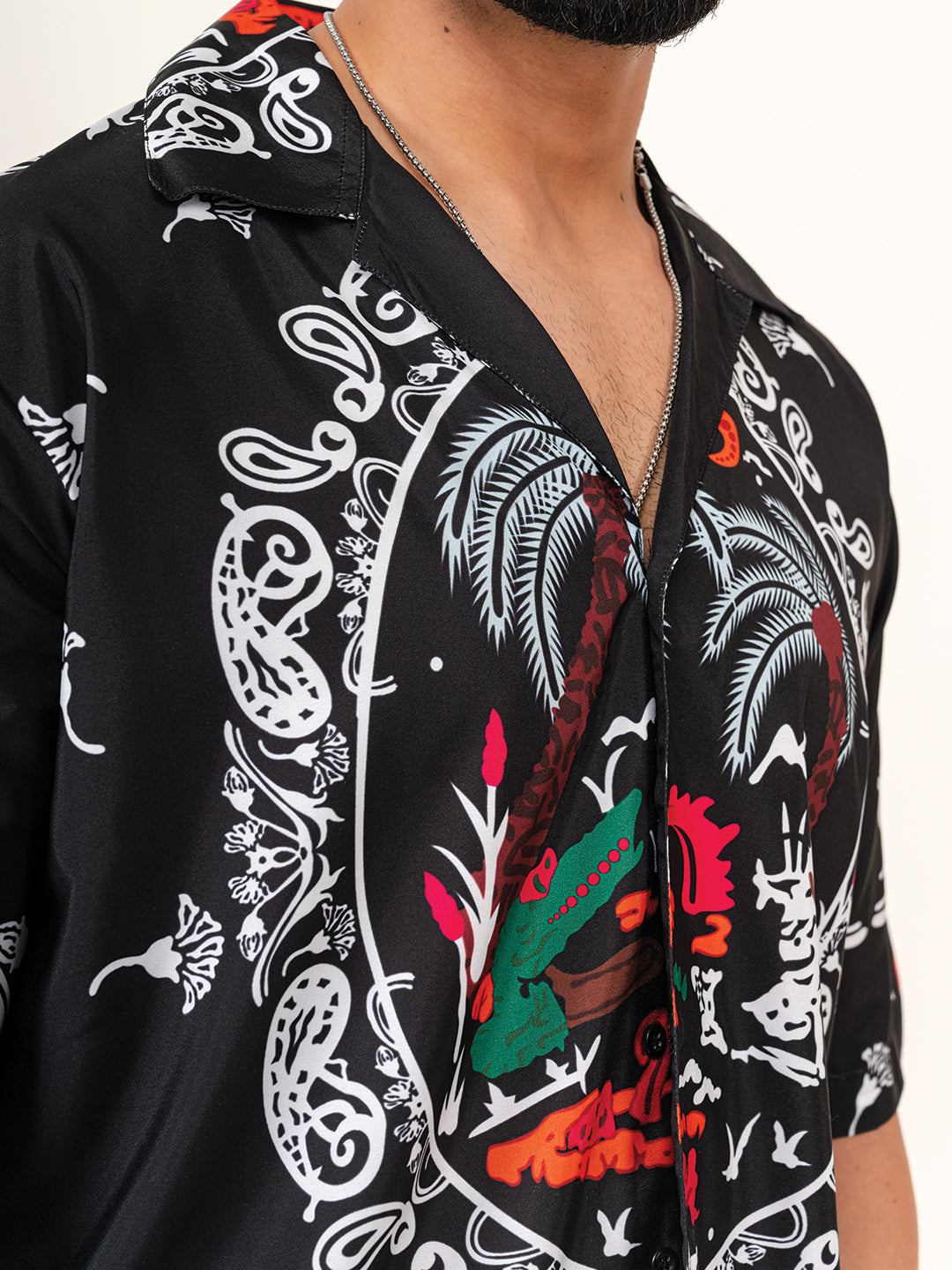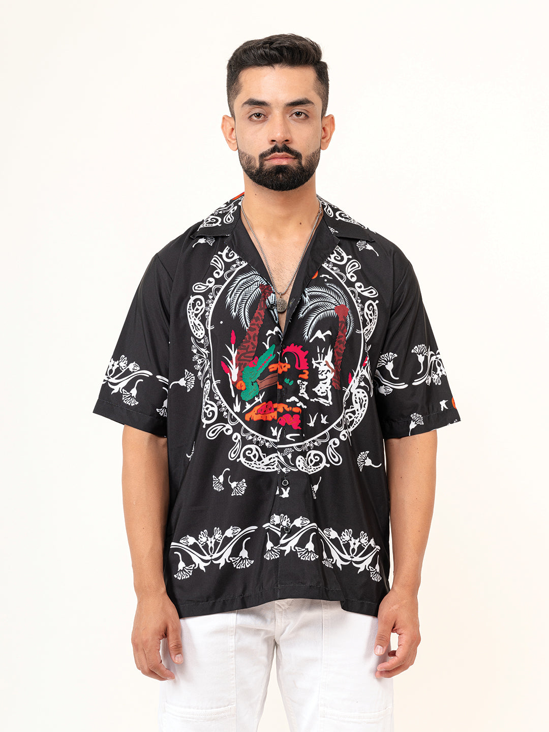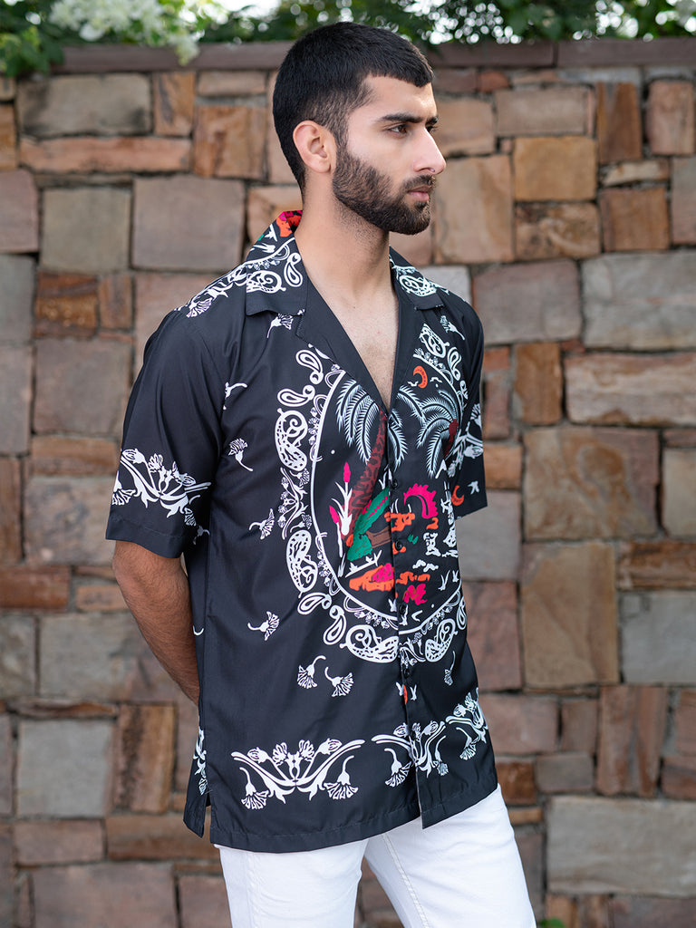 About the product- The Black Paisley Printed Oversized Shirt is made from Crepe fabric with half-sleeves for high level of comfort!