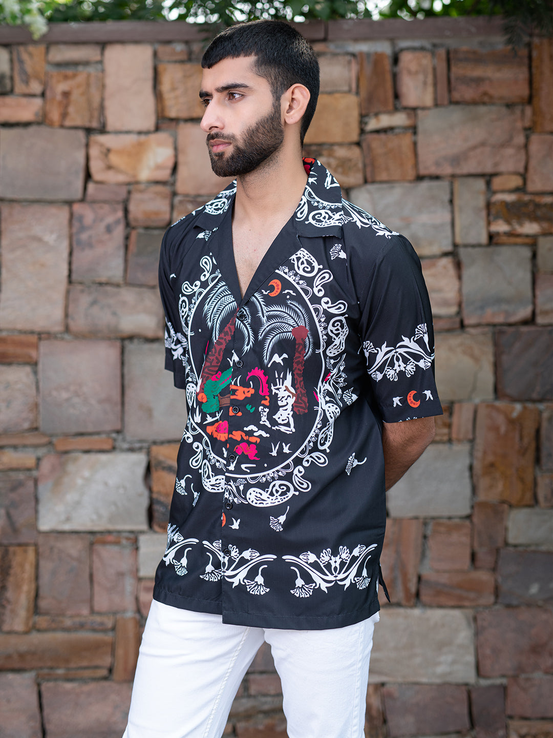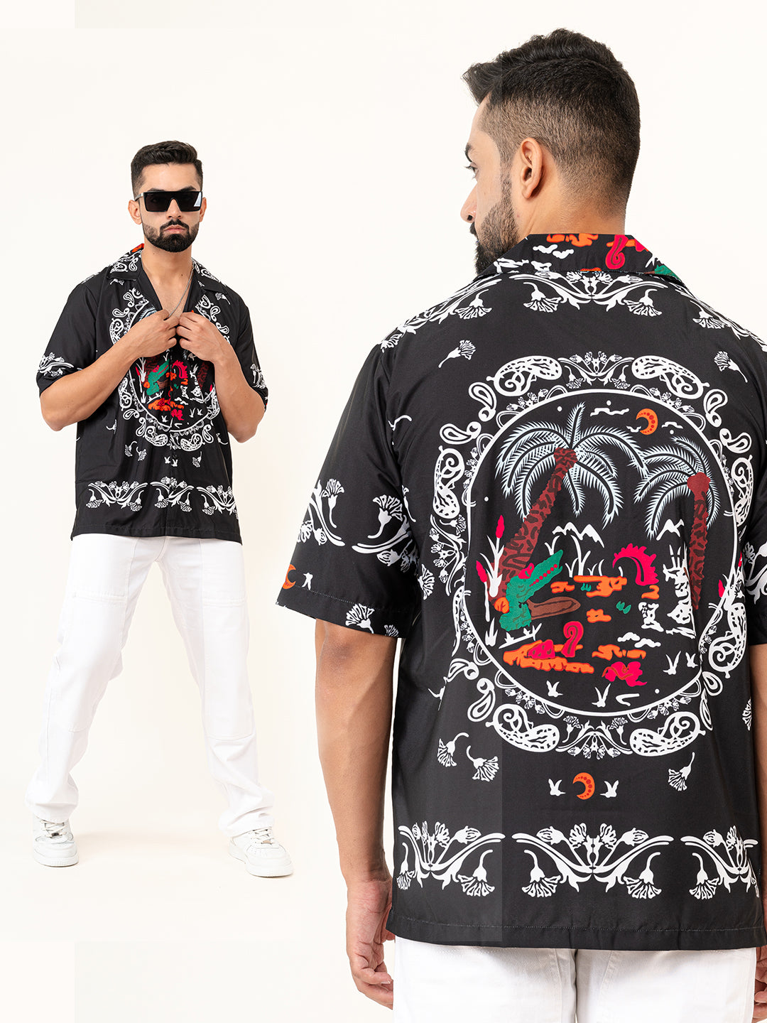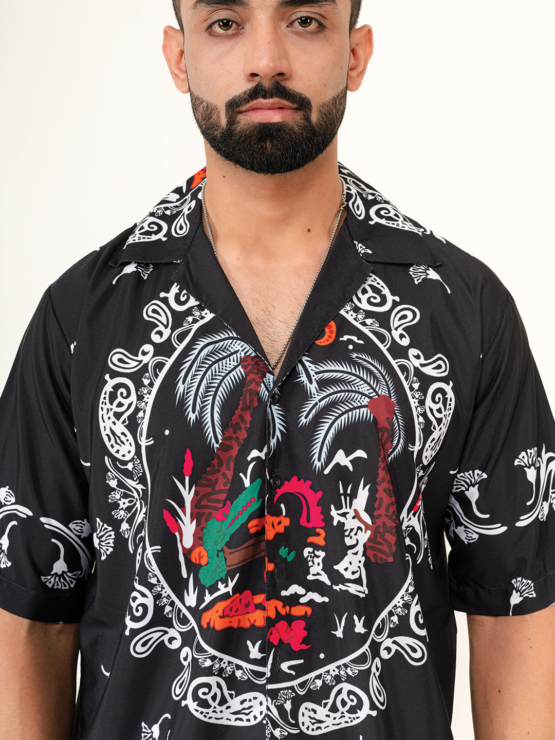 About the product- The Black Paisley Printed Oversized Shirt is made from Crepe fabric with half-sleeves for high level of comfort!