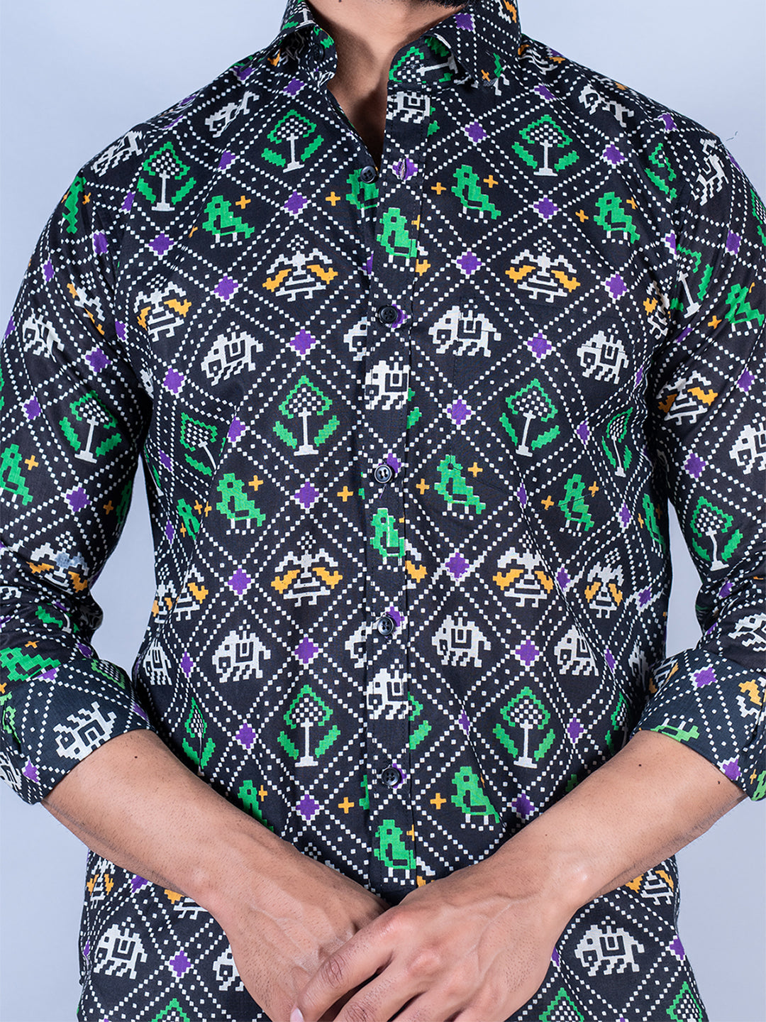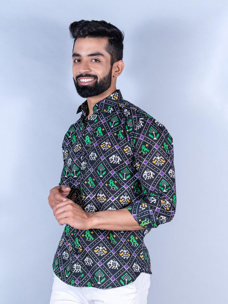 About the product: This black patola printed full sleeves cotton shirt is made to make you look smart. This comfortable shirt is a must inside your wardrobe.