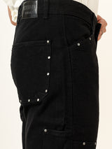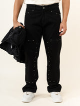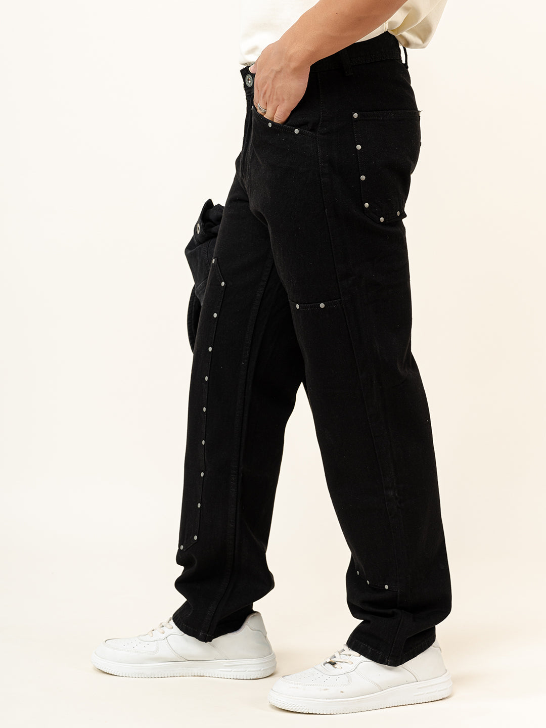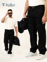 These black straight fit denim cargo Jeans offer a perfect blend of style and utility. Made from durable denim, they feature multiple pockets for enhanced functionality and a sleek, modern look.