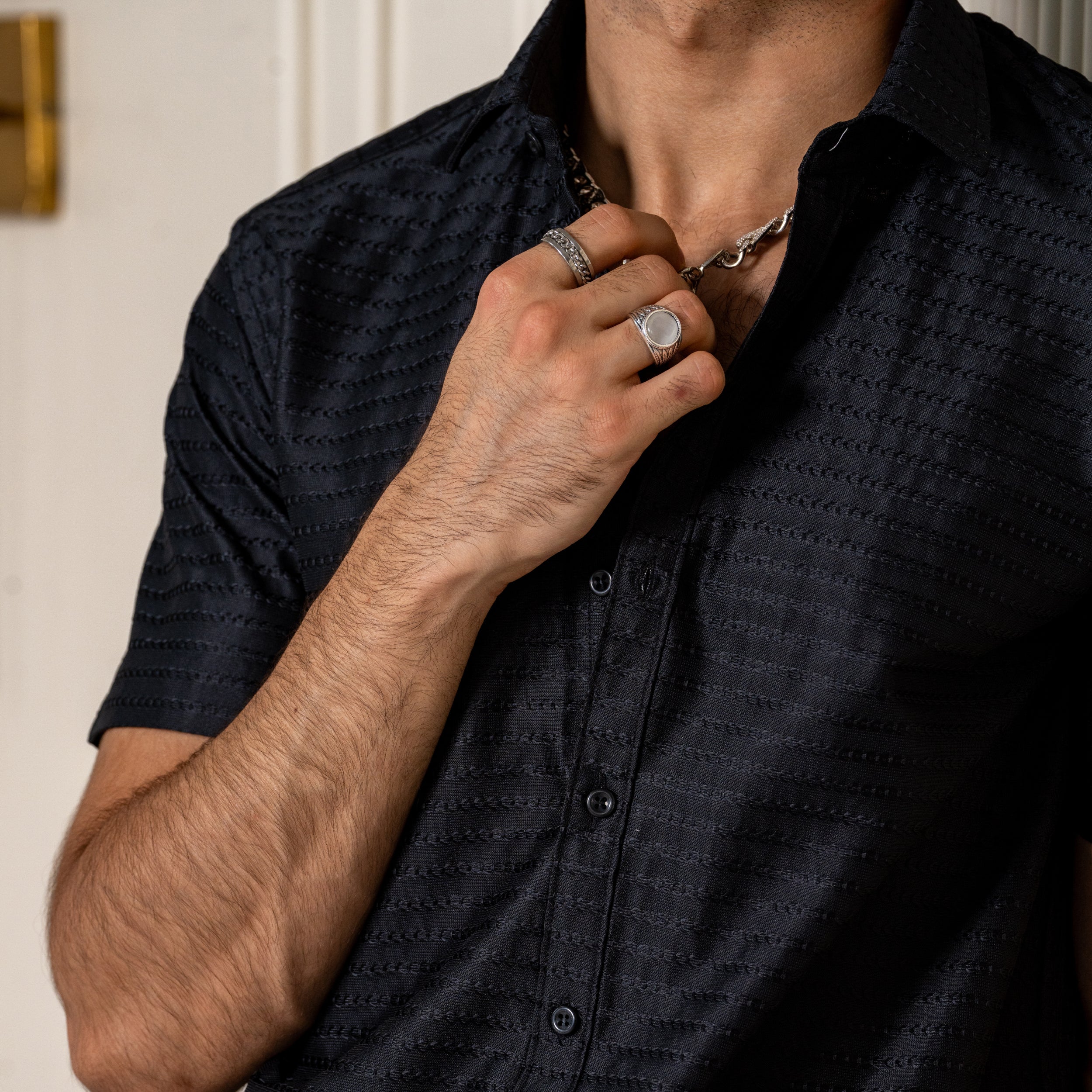 About Product- An essential for fashion-forward individuals, this black TURKISH weave shirt exudes refined style.