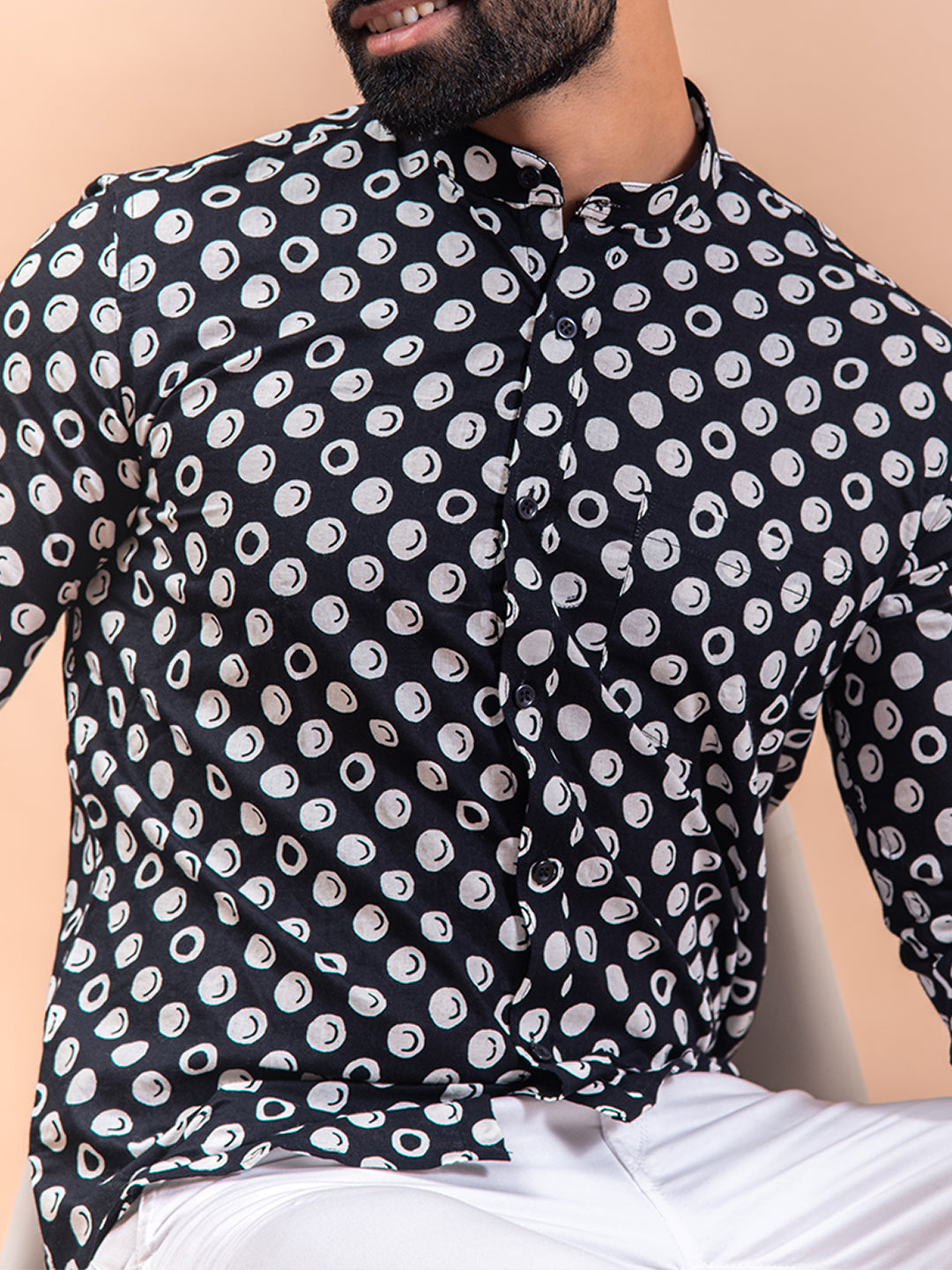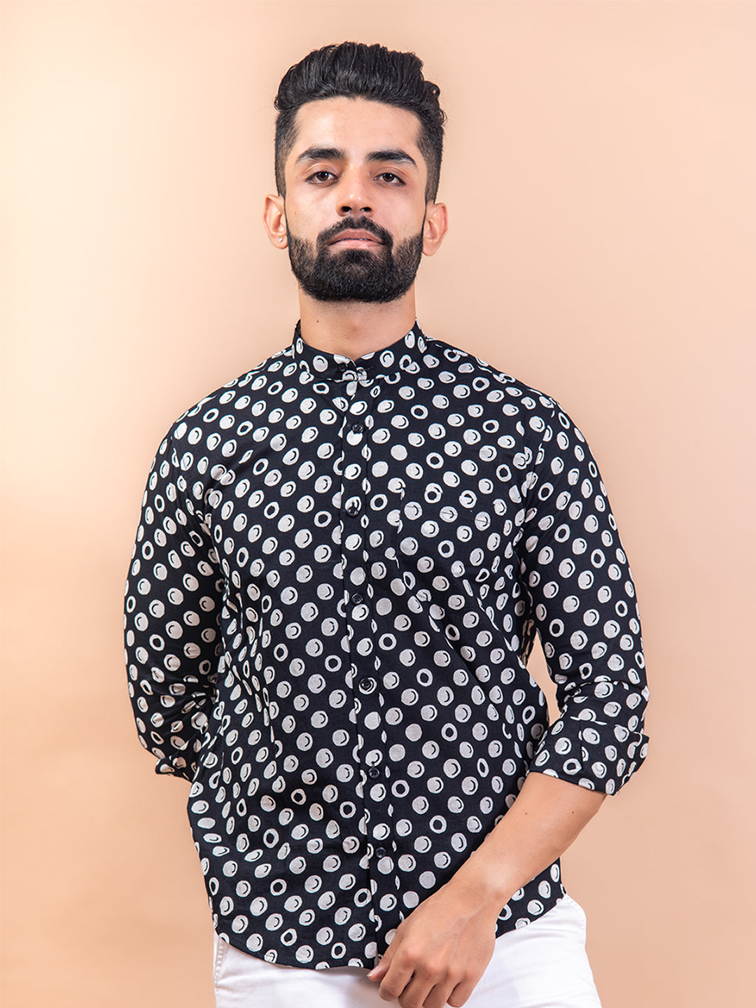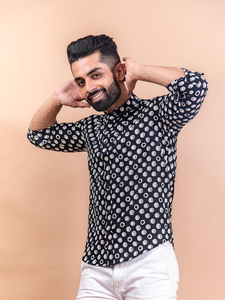 About The Product- This Beautifully Designed Black & White Polka Dotted Full Sleeve Shirt Is A Unique Shirt As It Has Its Own Designer Pattern.