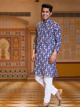 About the Product- Men’s Straight Blue Block Rogan Printed Kurta is all set to make you feel unique and stunning with an authentic heritage quality and for a rich look.