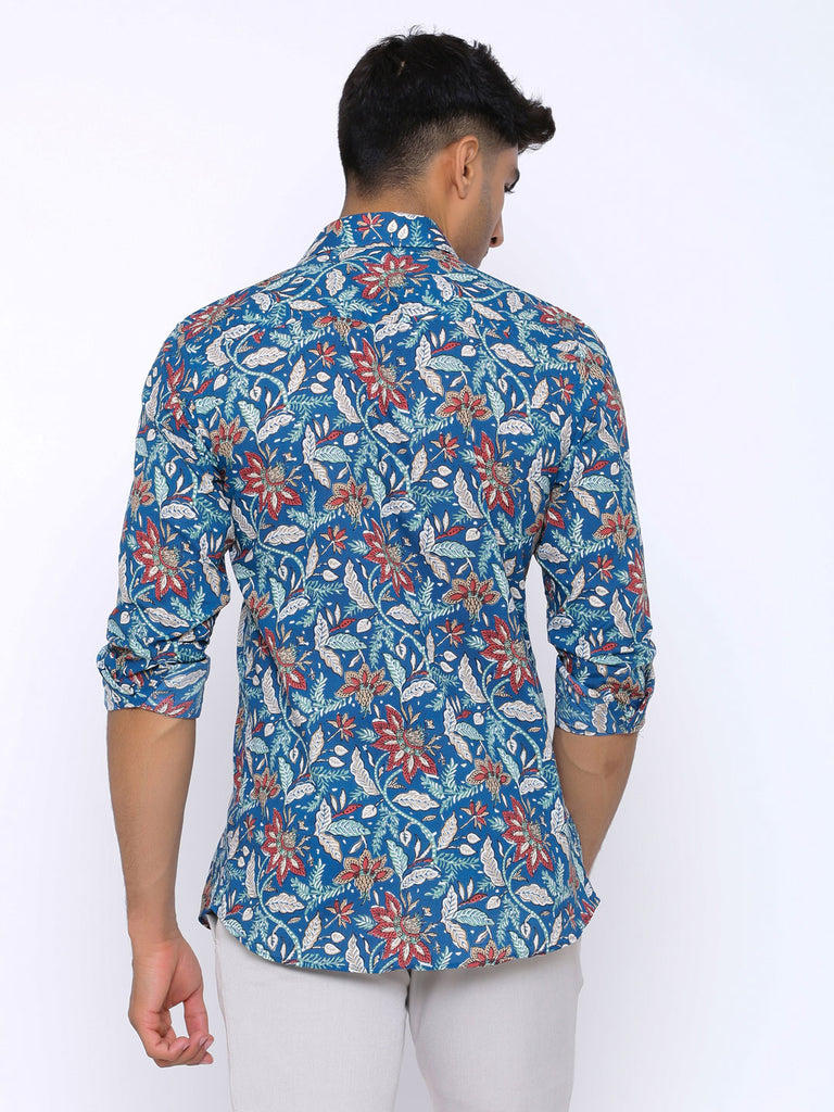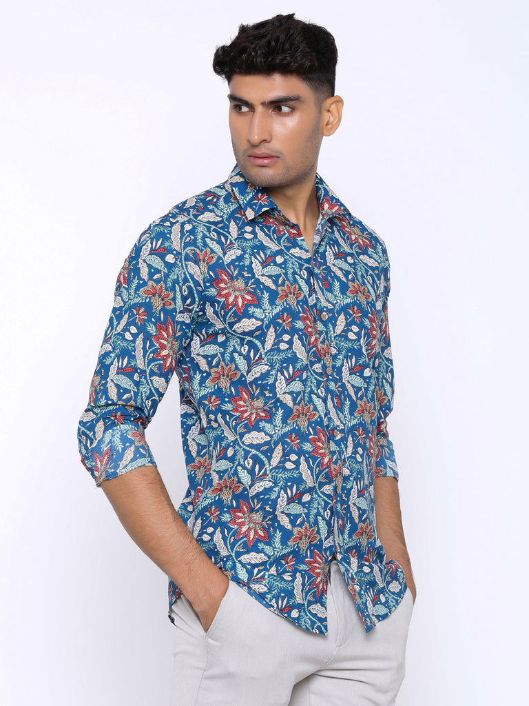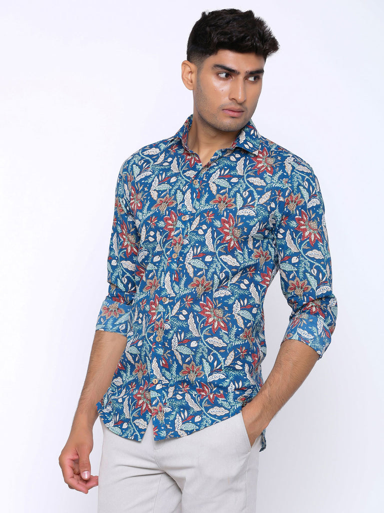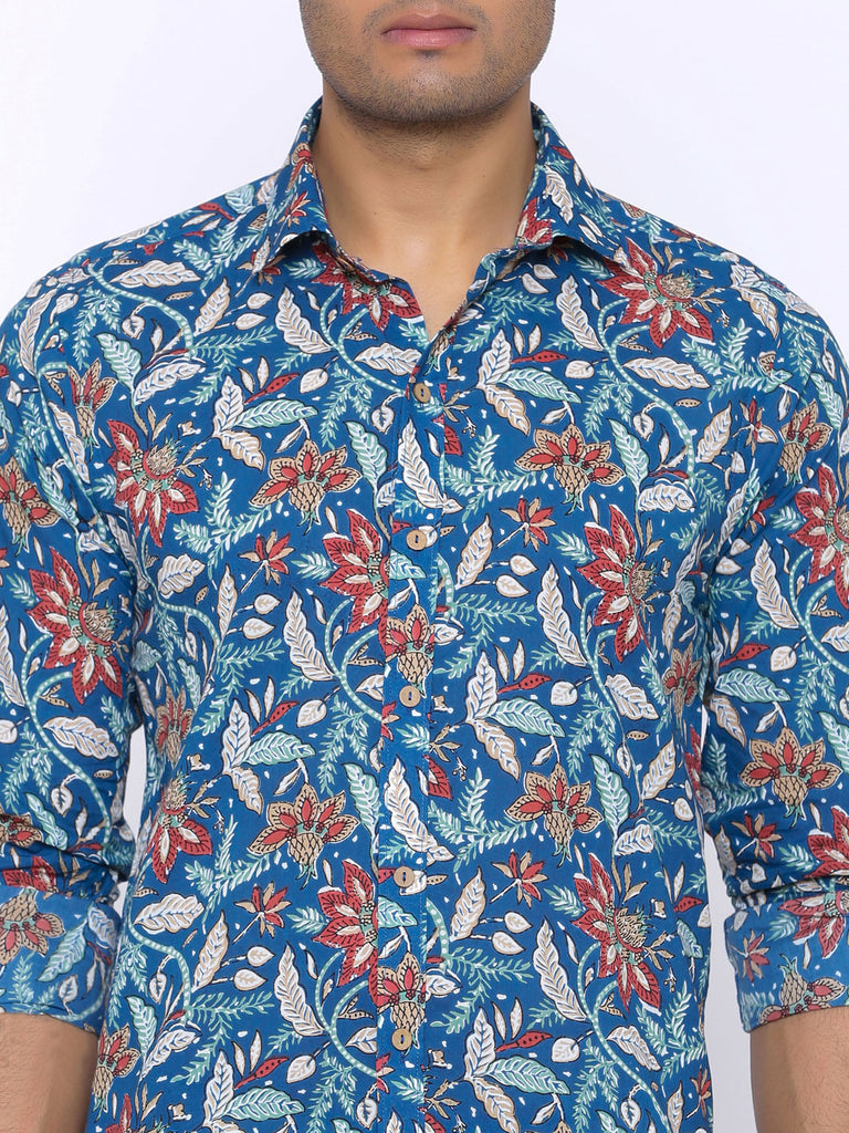 About the product: This Blue Blooming Printed Cotton Shirt is made to make you look smart and handsome. This shirt is so comfortable yet so stylish.