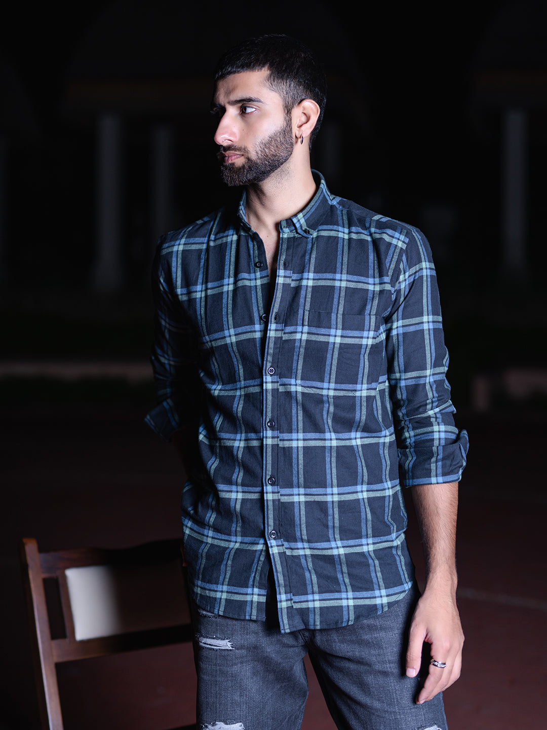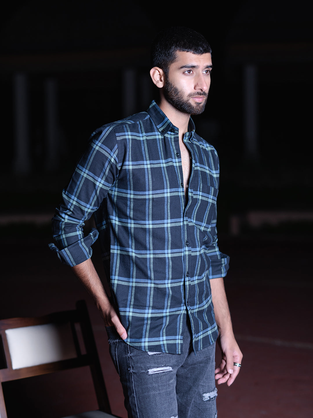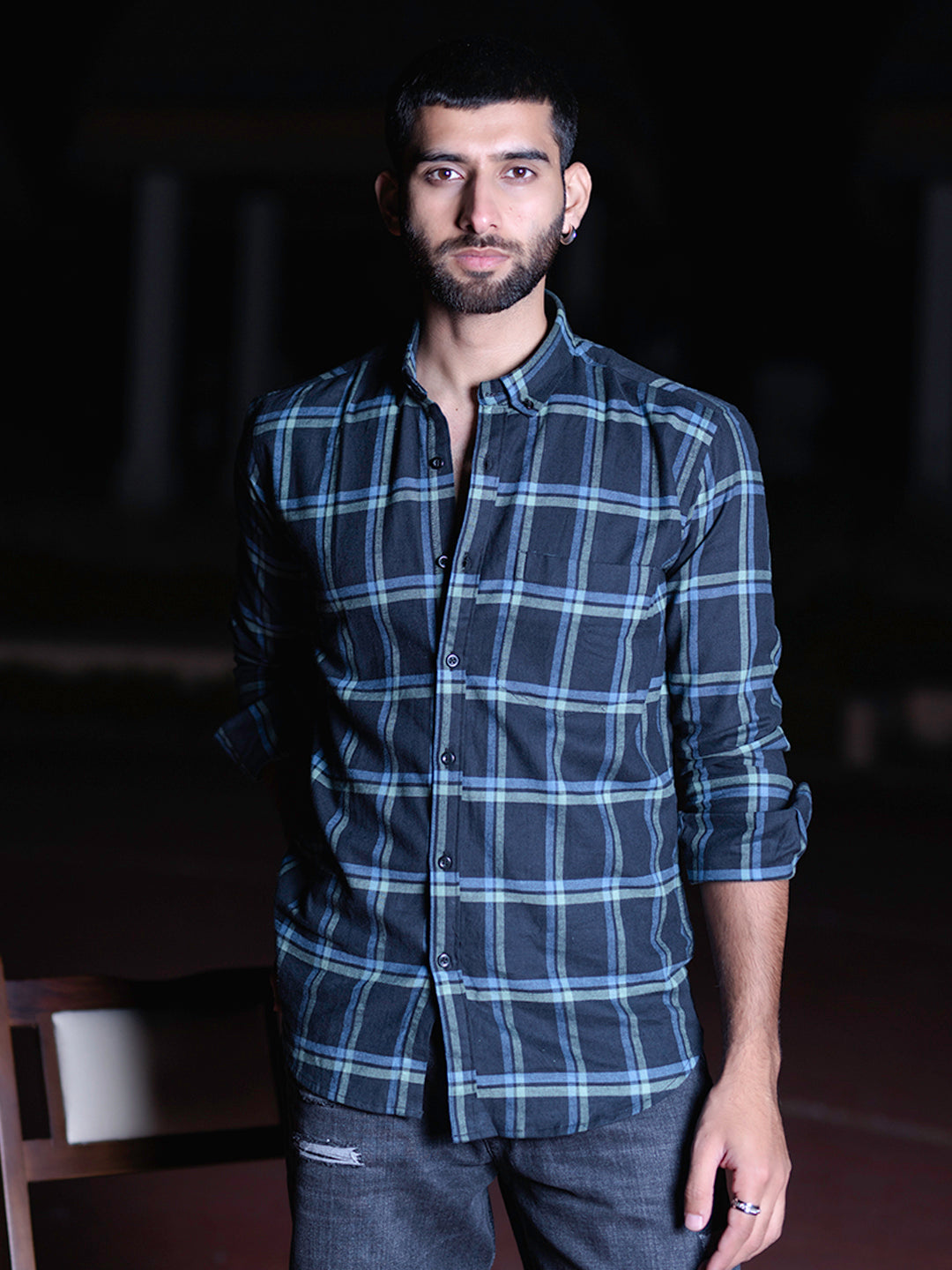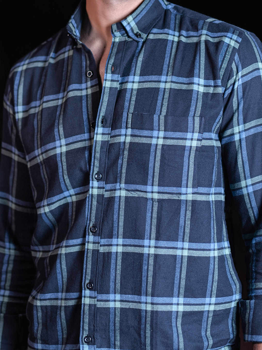 About the product-  This full-sleeve cotton-made blue check shirt is highly comfortable and breathable to help you stay fresh throughout the day.