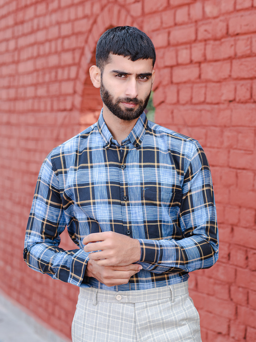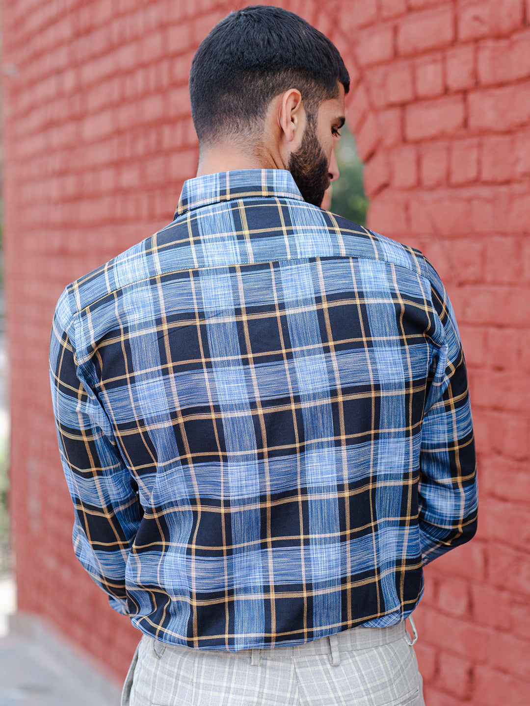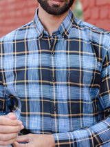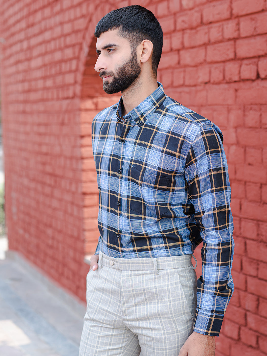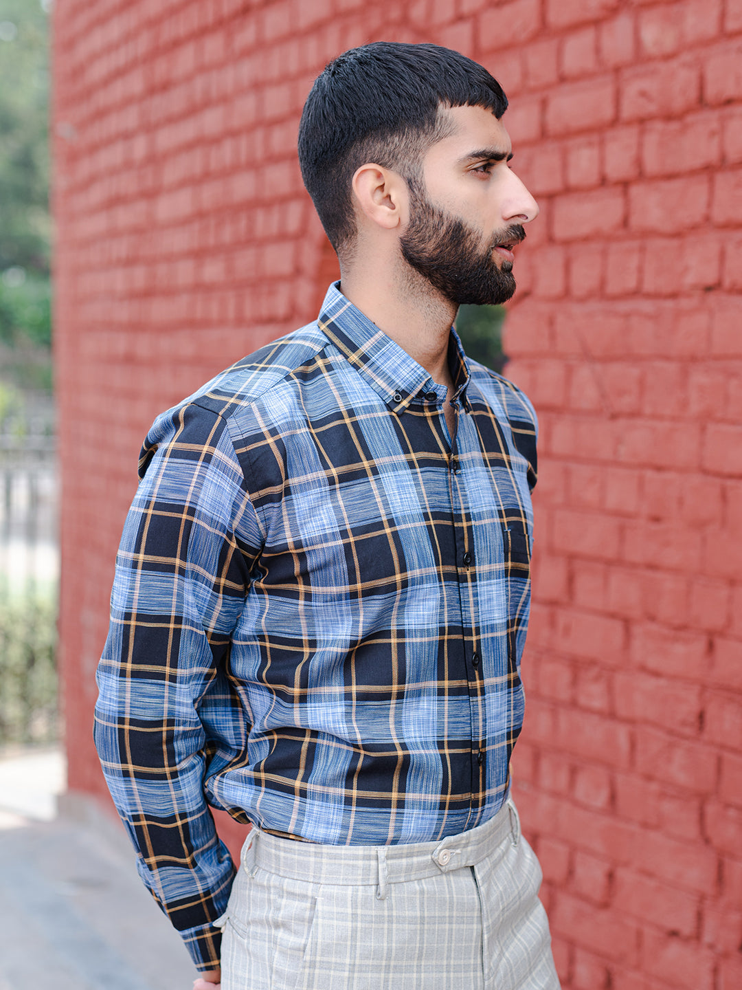 About the Product - Upgrade your wardrobe with this blue full-sleeve check shirt for men, designed to offer both style and comfort for any occasion.