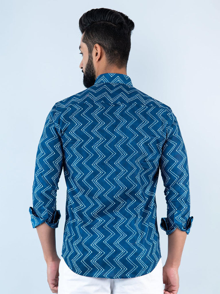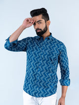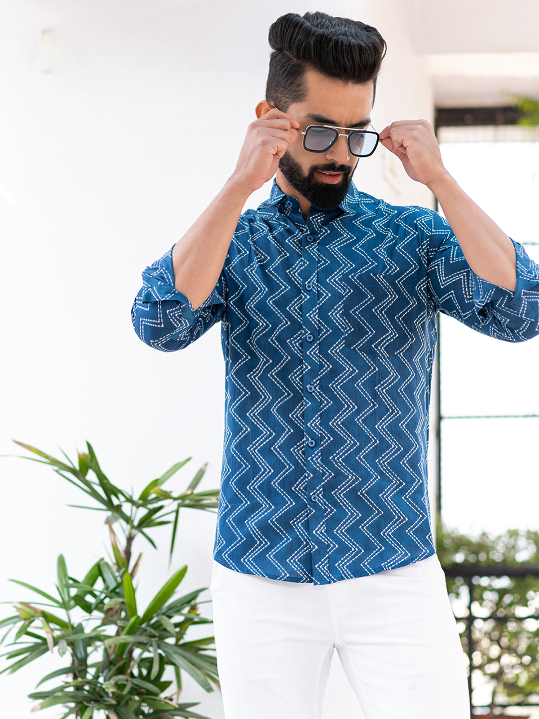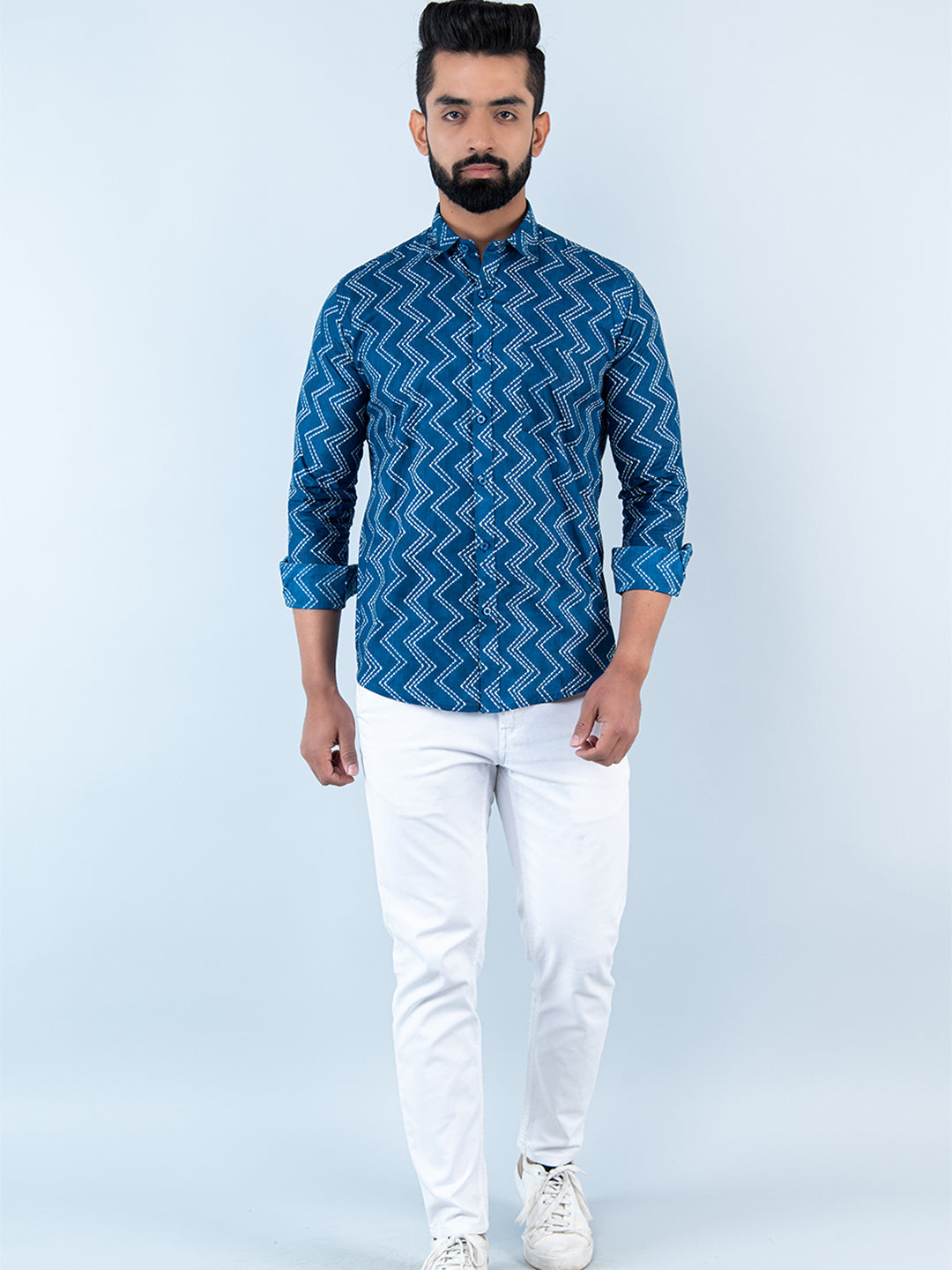 About The Product- Get A Classy And Charming Look By Wearing A Blue Chevron Printed Full Sleeves Cotton Shirt And Upgrade Your Fashion Quotient.
