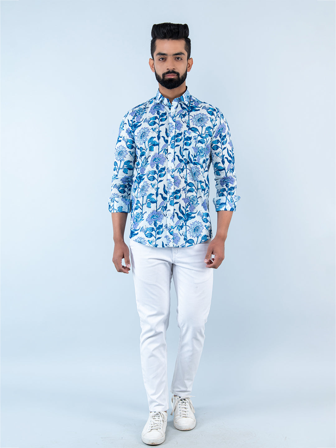 About The Product- This Blue Chintz Printed Full Sleeves Cotton Shirt Is Being Designed Keeping The Comfort And Latest Trends In Style And Fashion In Mind, Wear This And Look Stunning.