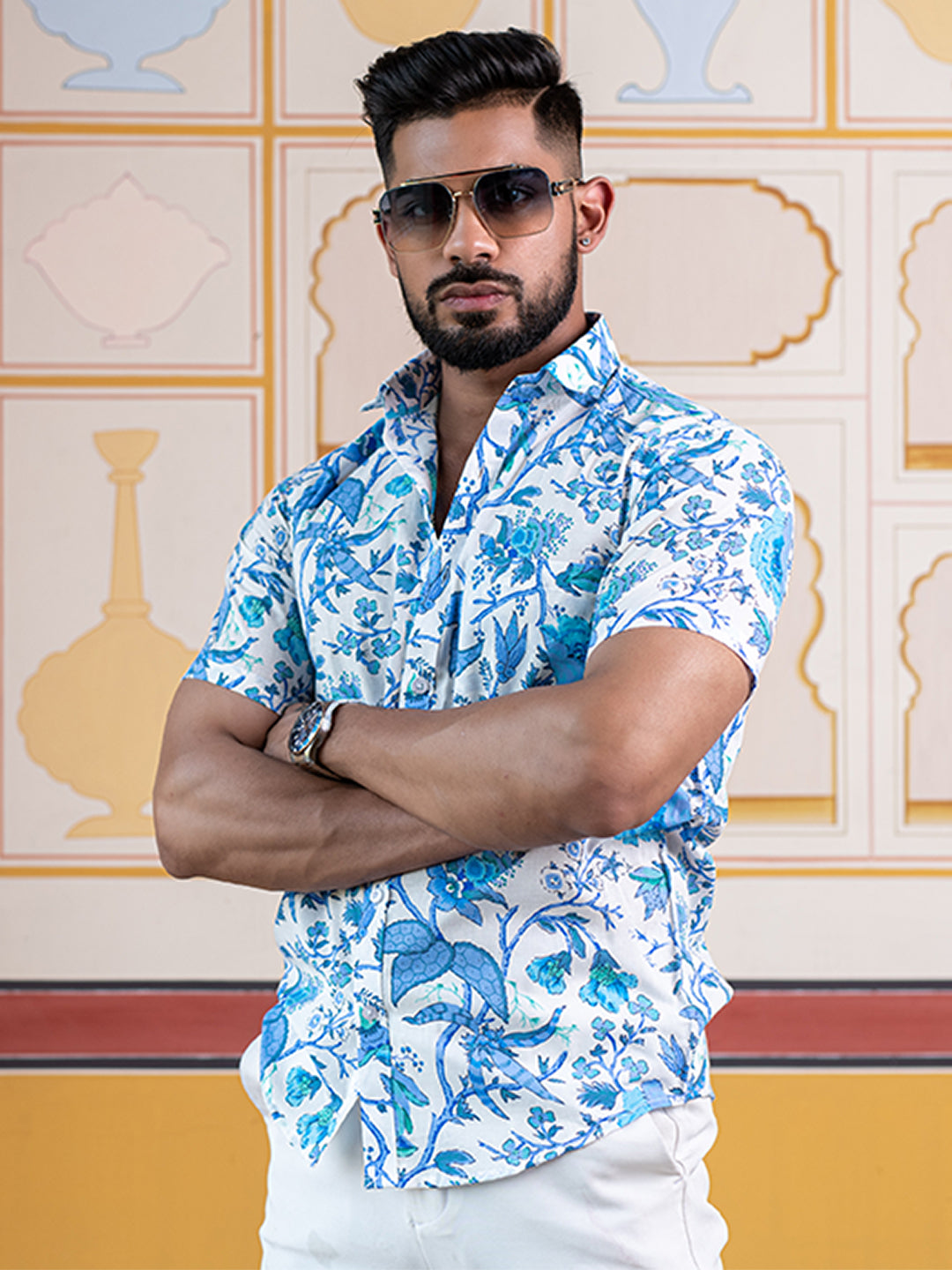 About the product: This blue chintz printed half sleeves cotton shirt is made to make you look smart. This comfortable shirt is a must inside your wardrobe.