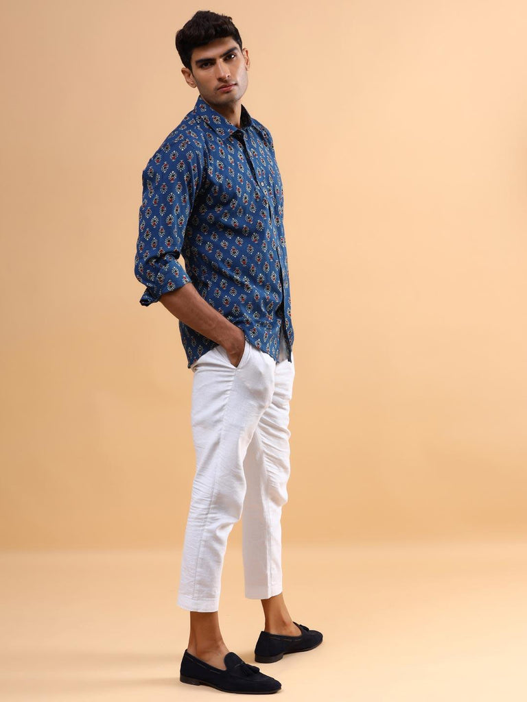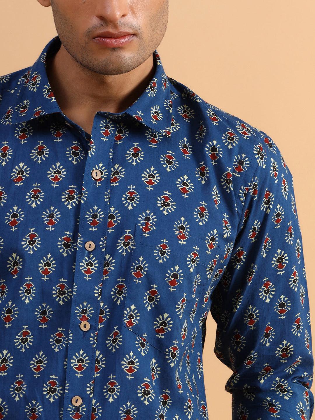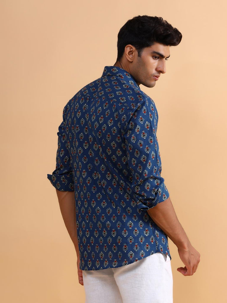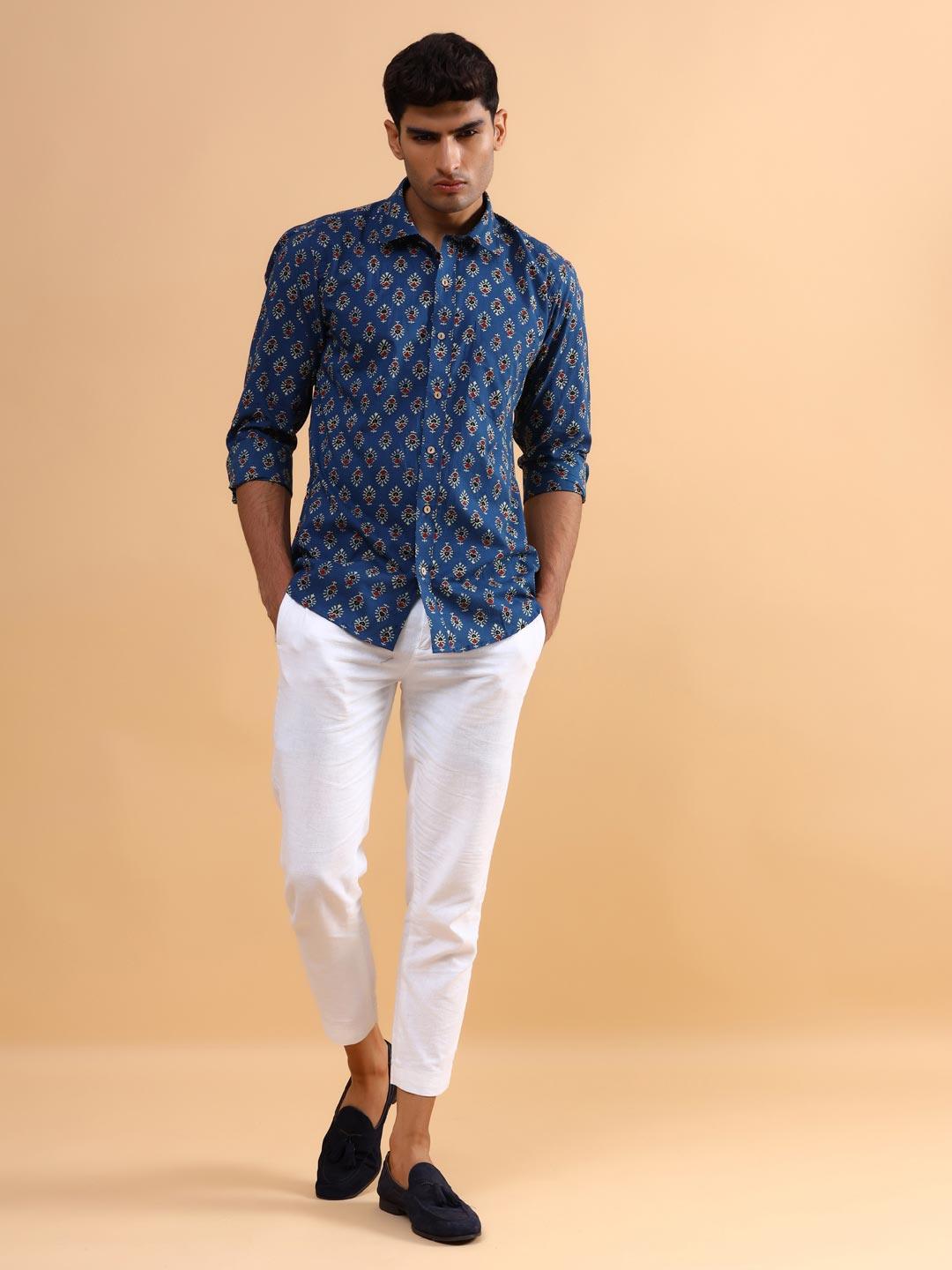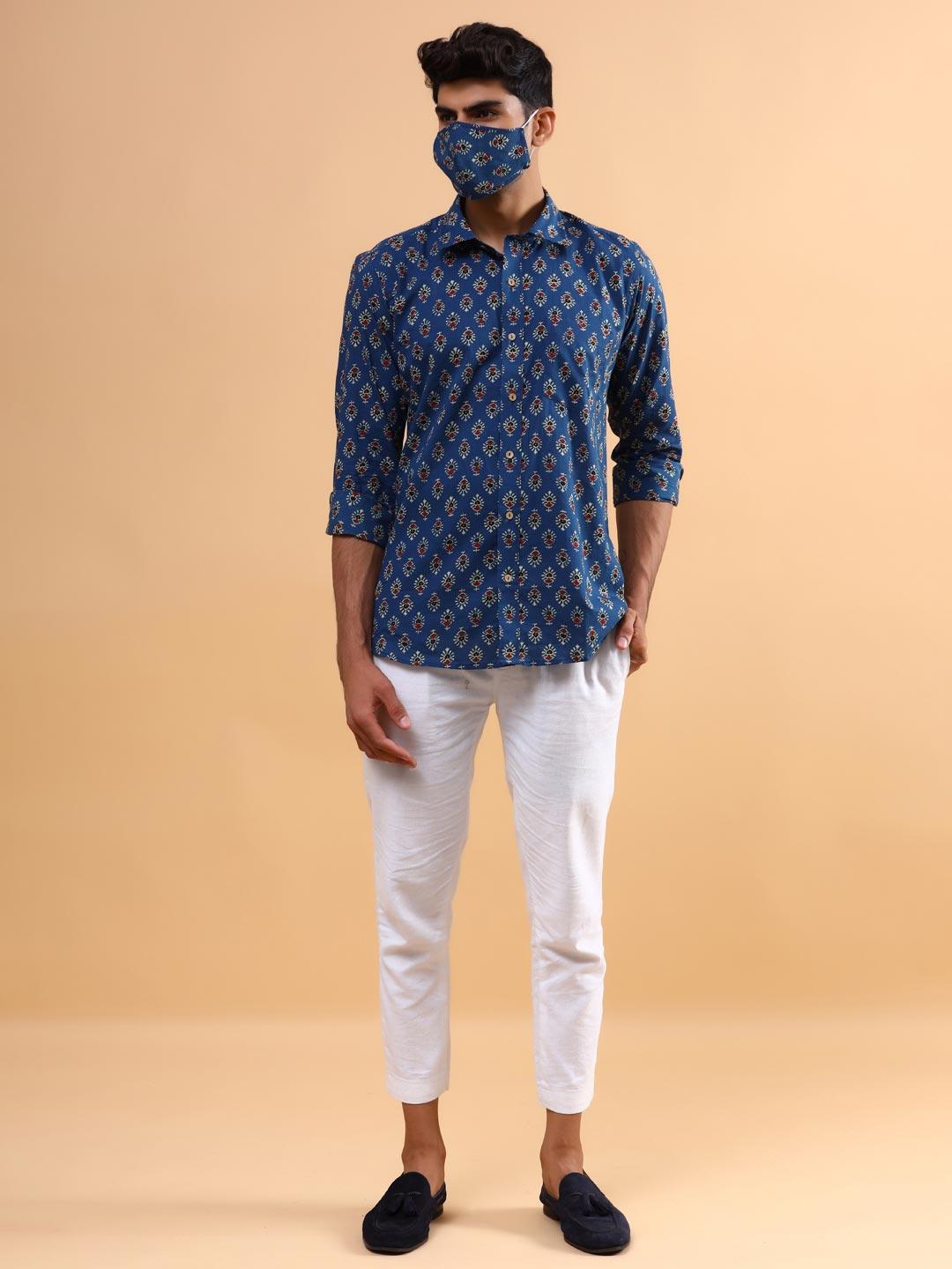 About the product: This Blue Firori Printed Cotton Shirt is made to make you look smart and handsome. This shirt is so comfortable yet so stylish.