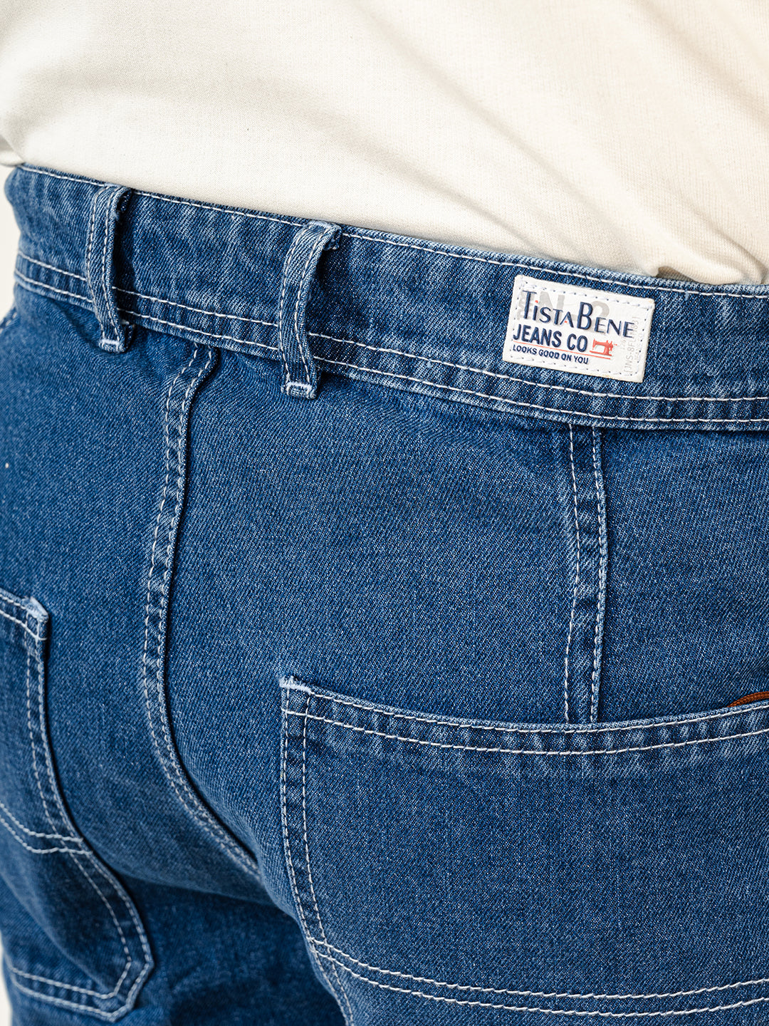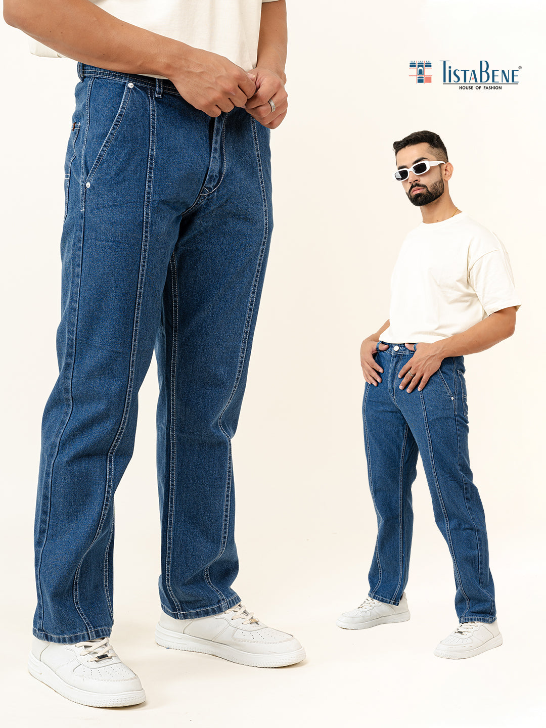 Occasion- Blue Flared Straight Fit Denim Cargo Perfect for casual outings or a relaxed weekend. It is sufficiently versatile to fit a range of situations and offers comfort and style.