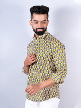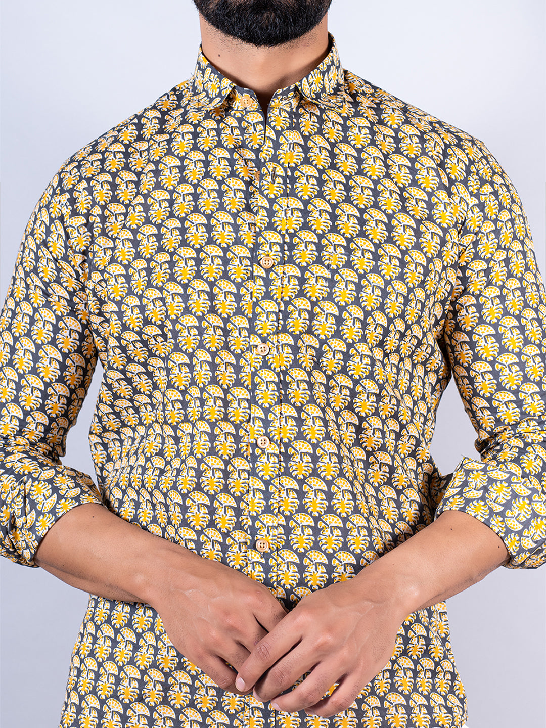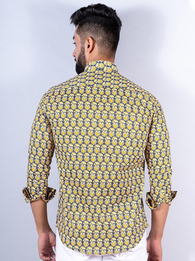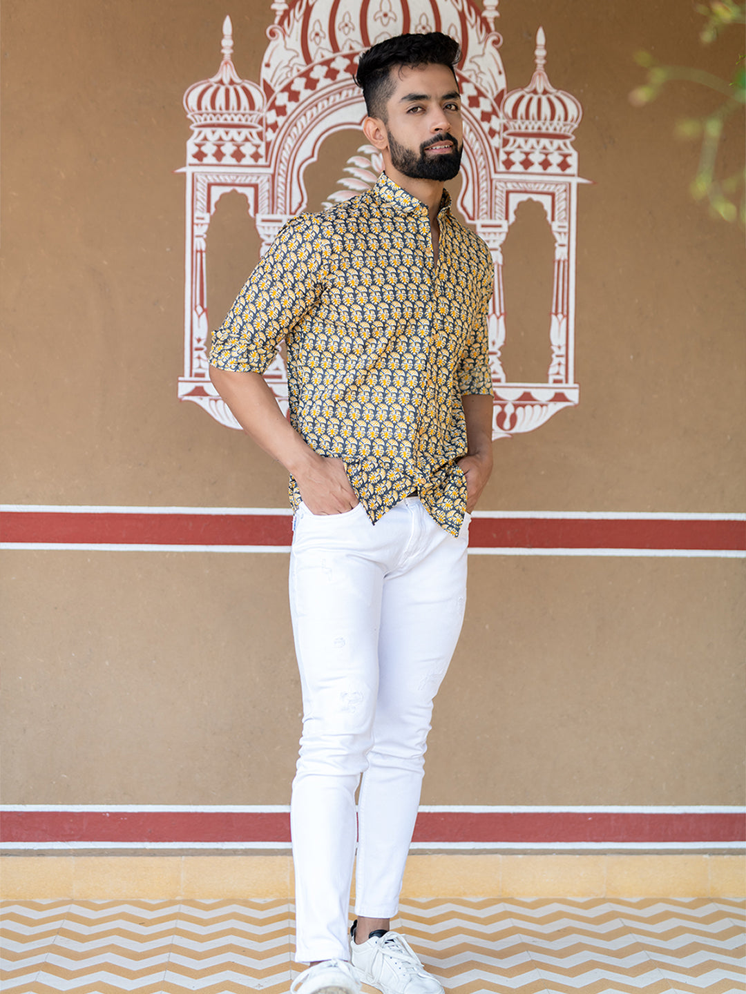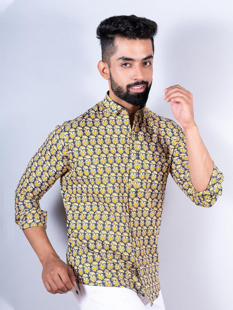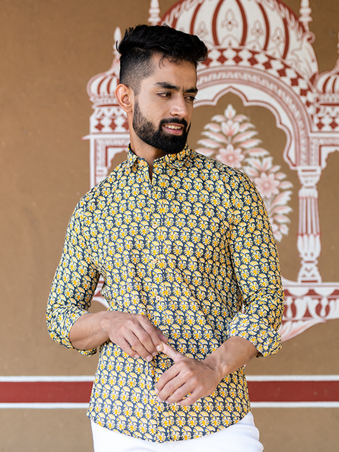 About the product: This blue floral block printed full sleeves cotton shirt is made to make you look smart. This comfortable shirt is a must inside your wardrobe.