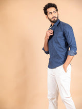 About The Product- Blue Formal Solid Giza Cotton Shirt Made For Formal Looks, 100% Comfortable, And Feels Soft And Smooth On The Skin.