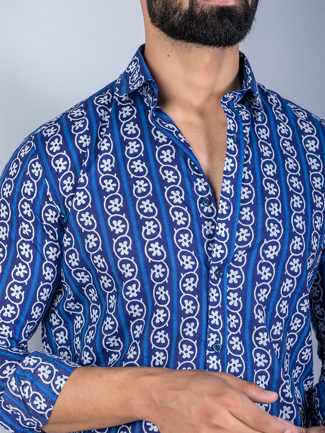 About the product: This blue floral printed full sleeves cotton shirt is made to make you look smart. This comfortable shirt is a must inside your wardrobe.