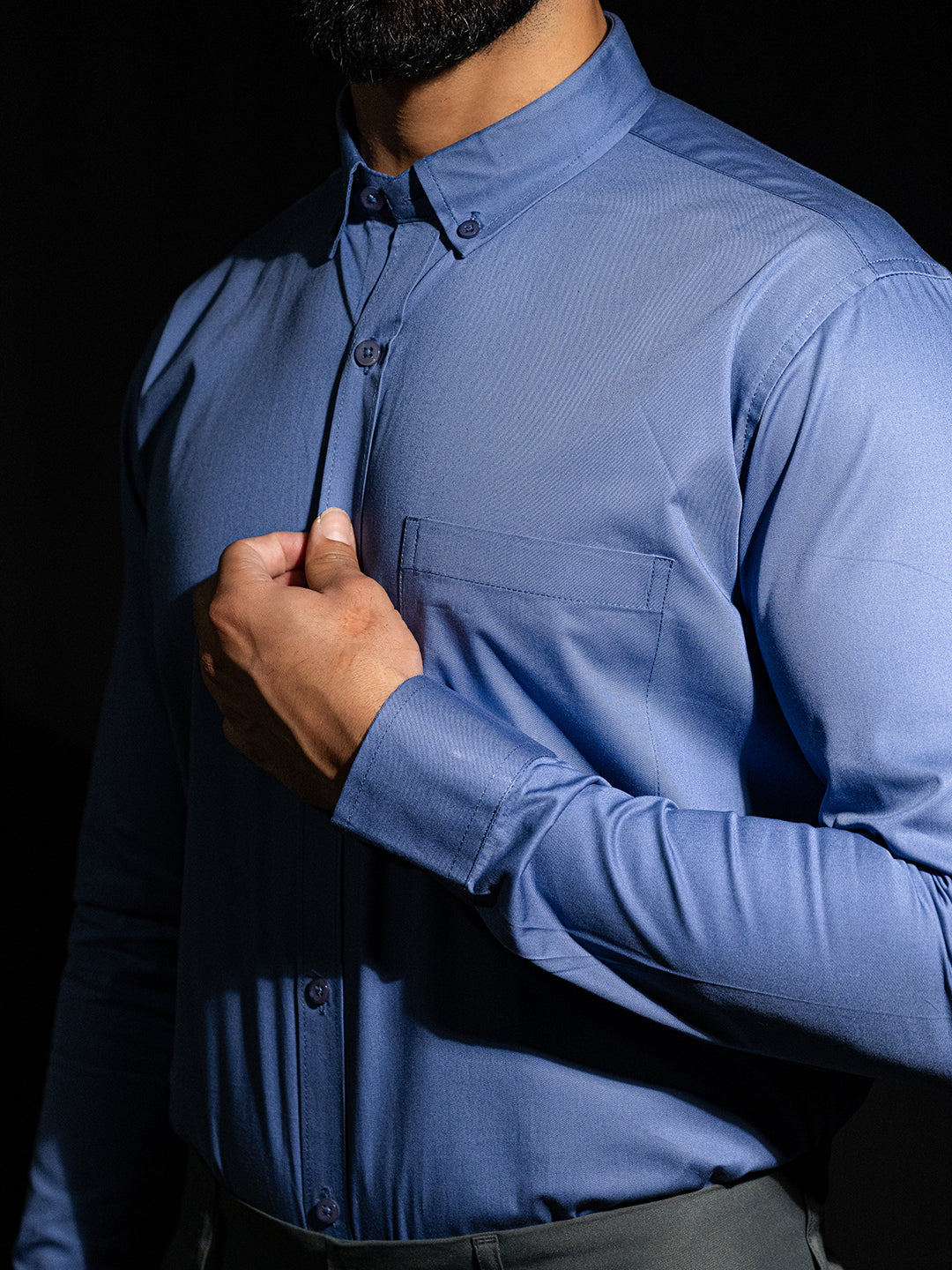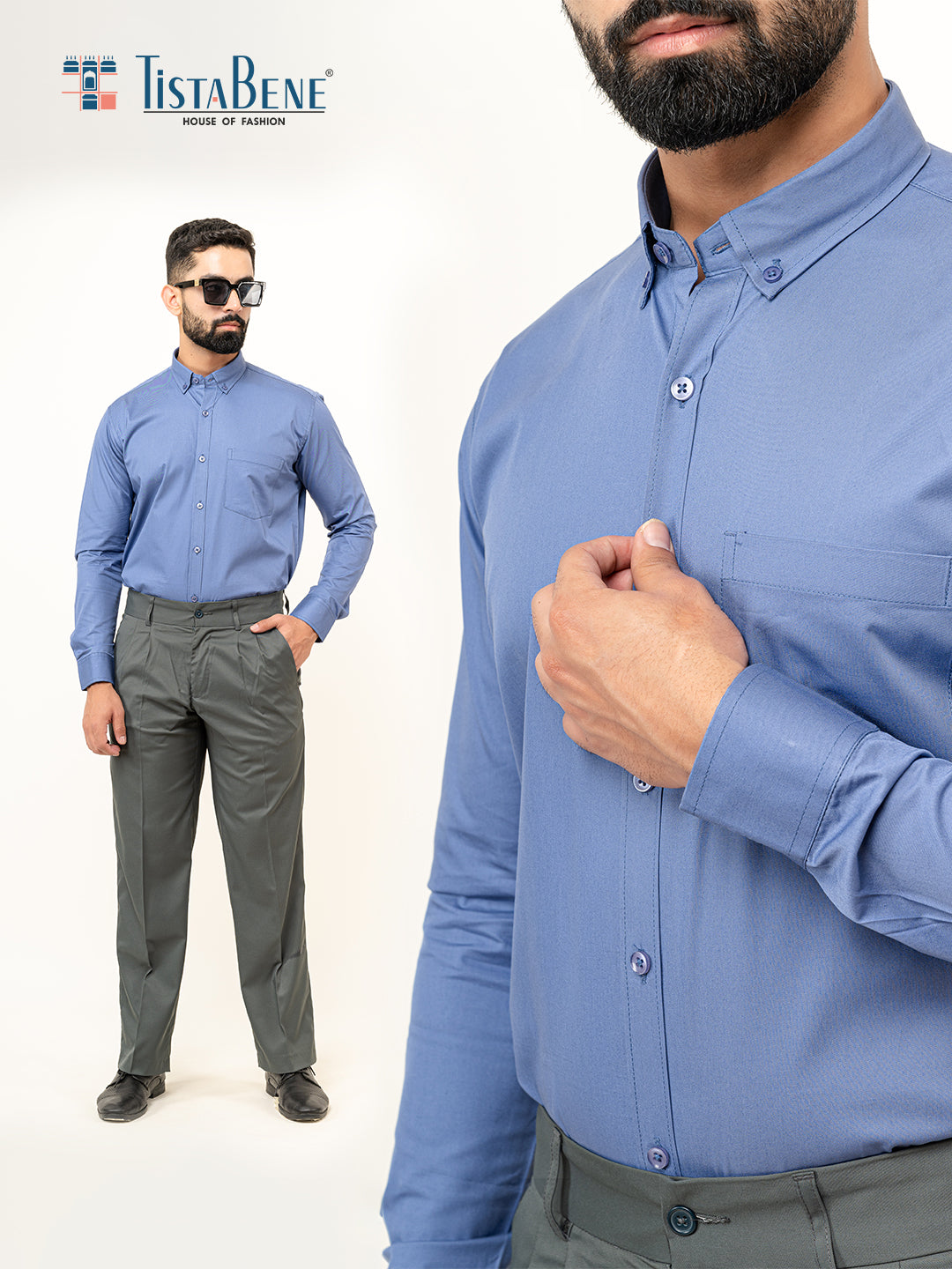 Style note - Blue shirt is one of the most demanded products. Pair blue shirt with light blue denim jeans and wear brown shoes to complete your look