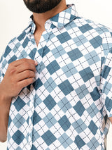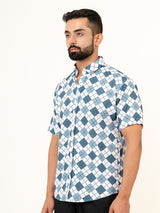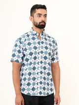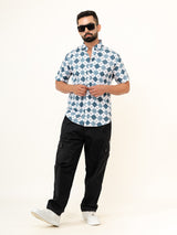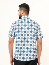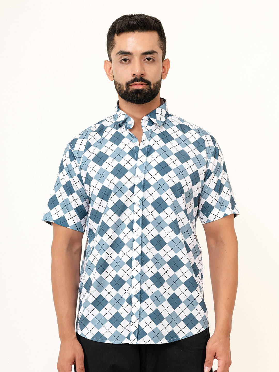 Style note - Do you want look sexy and modern? Wear blue crepe printed shirt and attarct folks to your personality. Pair this with black denim jeans and brown leather shoes and ket your dynamic personality speak in fron of people